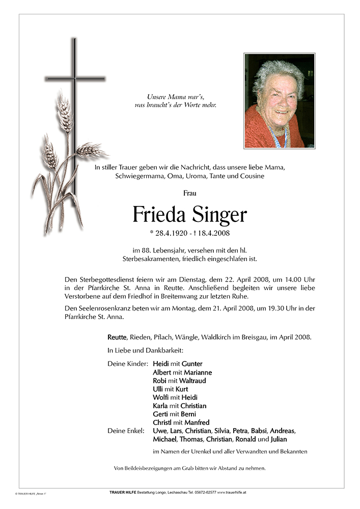 13.12.1901 18.04.2008 Reutte Frieda Singer Action Parte Gedenkkerzen Kondolenzen Parte Gedenkkerzen Kondolenzen Parte herunterladen Gedenkkerzen für Frieda Singer 4 Einträge Kerze anzünden Zum Geburtstag liebe Mama Karla♥️ Hab\'s fein im Himmel ❤️ Karla Bist in meinem Herzen ❤️Karla 18. 04. 2018 Ihre Gedenkkerze fürFrieda Singer Ihr Name* Farbe auswählen Ihre Nachricht oder Name* E-Mail-Adresse* Mit dem Klicken auf "Kerze anzünden" erklären Sie sich mit unseren Datenschutzbestimmungen einverstanden. Kondolenzbuch für Frieda Singer 0 Einträge Kondolenz verfassen Ihr Abschiedsgruß an Frieda Singer Ihr Name* E-Mail-Adresse* Ihre Nachricht* Mit dem Klicken auf "Gruß absenden" erklären Sie sich mit unseren Datenschutzbestimmungen einverstanden.