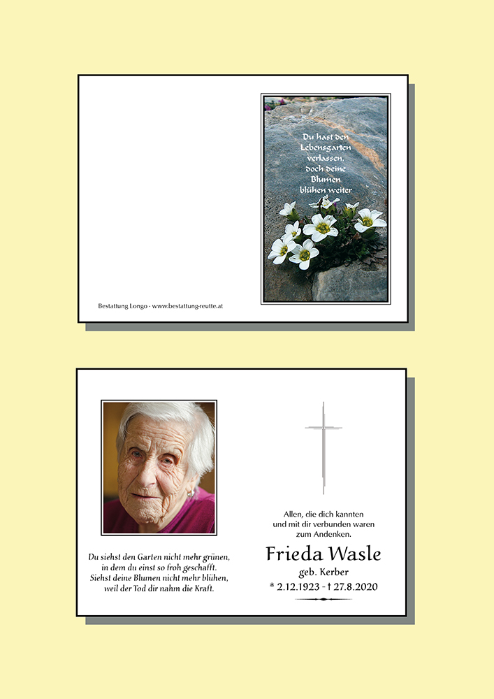 Kondolenzbuch fĂŒr Frieda Wasle