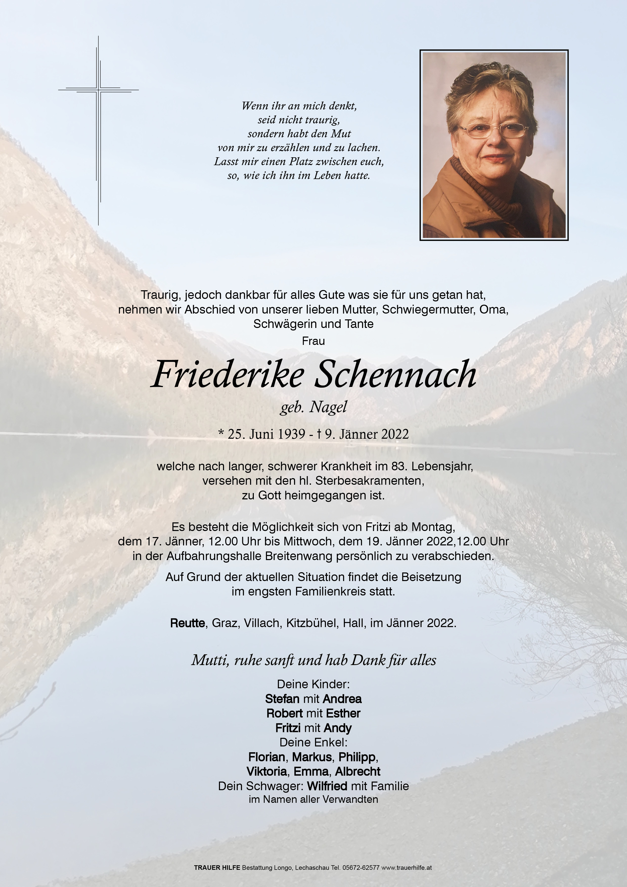 25.06.1939 09.01.2022 Reutte Friederike Schennach Action Parte Sterbebild Gedenkkerzen Kondolenzen Parte Sterbebild Gedenkkerzen Kondolenzen Parte herunterladen Sterbebild herunterladen Gedenkkerzen für Friederike Schennach 97 Einträge Kerze anzünden RIP. Werner und Karin Kößler ?? Alexandra Schretter das Osterlicht Roland Maldoner-Jäger Claudia Feistenauer Claudia Feistenauer Claudia Feistenauer Diane Häsele Ruhe in Frieden! Monika Bilgeri Fam. Klaus u. Beate Schimana Ruhe in Frieden Peter u Christine Diane Häsele Sabine u. Anton Perktold Unser Beileid! Horst & Karin Christa Bader(Hohenrainer) Claudia Feistenauer Maria und Franz Stickler Ruhe in Frieden Waltraud Fam. Brunnsteiner Fam. Hilde u. Roland Hechenblaikner Raimund &Martina Steiner Lechtaler Autohaus Fam. Wolf Reutte Elisabeth Lipp Fam. Ihrenberger Werner, Veronika und Sonja Christine Grasl RUHE IN GOTTES FRIEDEN Bernadette Schautzgy Paul Seitz mit Familie Paul und Friederike Barbist Sonja Kuisle Julia Gruber Ruhe in Frieden Fam. Gläser Werner und Michaela Familie Josef Dürrhammer Ruhe in Frieden Christine und Thomas Familie Reiter Familie Anton Specht Haus Ehrenberg Wohnbereich EG Lucas Gezzele Claudia Knittl Eva-Maria Karl Eva Barbist mit Familie Uli Schädler Anna-Maria Tschiderer R. I. P Doris Schautzgy (Hohenrainer) Marga Hackl Sabine Ennemoser Michael Steiner Trude u. Stefan Brüggl Margit Weirather, Lechaschau Fam. Martin und Elisabeth Weirather Ruhe in Frieden! Monika Bilgeri Paul u. Veronika Kerber Alois Gratl Gerda u. Fritz Bubendorfer Christine Strauß mit Familie Stefan , Katrin , Felix und Anna Funke Maria und Kurt Bader Fam. Stefan Beirer Gerlinde Hengg Marianne & Peter Schautzgy Alexander Ammann Kurt und Andrea Hohenrainer Drexel Romy Heike u. Andi m. Lina Anneliese und Sven Beinstingl Michael Mutschlechner Martin Suitner Fam. Martina Storf Erika Heiß Monika Simader Trixi Krainer Hedi Wörle Manfred und Christine Solle Bernhard und Christine Helfer Simone und Andi mit Luis und Leo RIP. Werner und Karin Kößler Mario und. Barbara Rief Fam. Paul und Annemarie Kaiser Barbara Wörle Annemarie Gerber Ruhe in Frieden Rosemarie Auffinger Martha Wörle Fam. Pellegrini Karl und Maria Gustl und Monika Ihrenberger Gabi Priemer Christine Weilharter Fam . Günther Haberl Fam. Edi Ammann Wex Petra Roswitha Feistenauer Fam. Peter u. Heidi Schneier Gerda Berger Barbara Schweißgut Claudia Schreieck TrauerHilfe Bestattung Longo Ihre Gedenkkerze fürFriederike Schennach Ihr Name* Farbe auswählen Ihre Nachricht oder Name* E-Mail-Adresse* Mit dem Klicken auf "Kerze anzünden" erklären Sie sich mit unseren Datenschutzbestimmungen einverstanden. Kondolenzbuch für Friederike Schennach 1 Eintrag Kondolenz verfassen Wir sind nur Gast auf Erden und wandern ohne Ruh‘ mit mancherlei Beschwerden der ewigen Heimat zu. Ruhe in Frieden 11.01.2022 um 16:56 Uhr Ihr Abschiedsgruß an Friederike Schennach Ihr Name* E-Mail-Adresse* Ihre Nachricht* Mit dem Klicken auf "Gruß absenden" erklären Sie sich mit unseren Datenschutzbestimmungen einverstanden.
