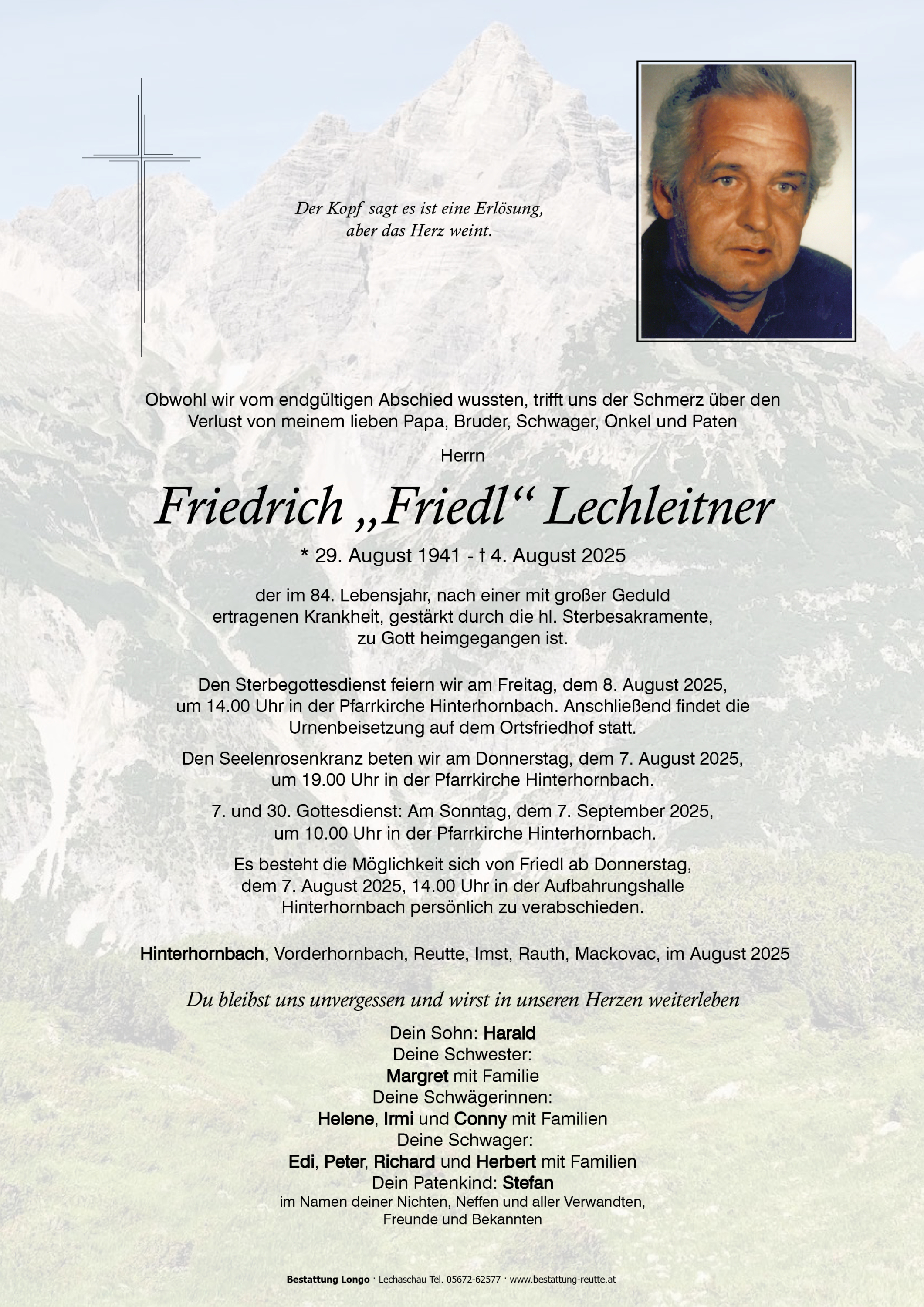 Kondolenzbuch für Friedrich "Friedl" Lechleitner