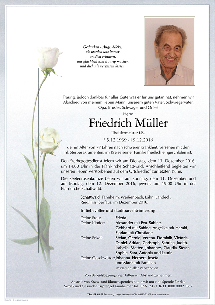 Pfiat di Friedrich, ruhe in Frieden. Hatte nicht die Kraft dich zu besuchen . Werde dich in liebevoller Erinnerung in meinem Herzen behalten.