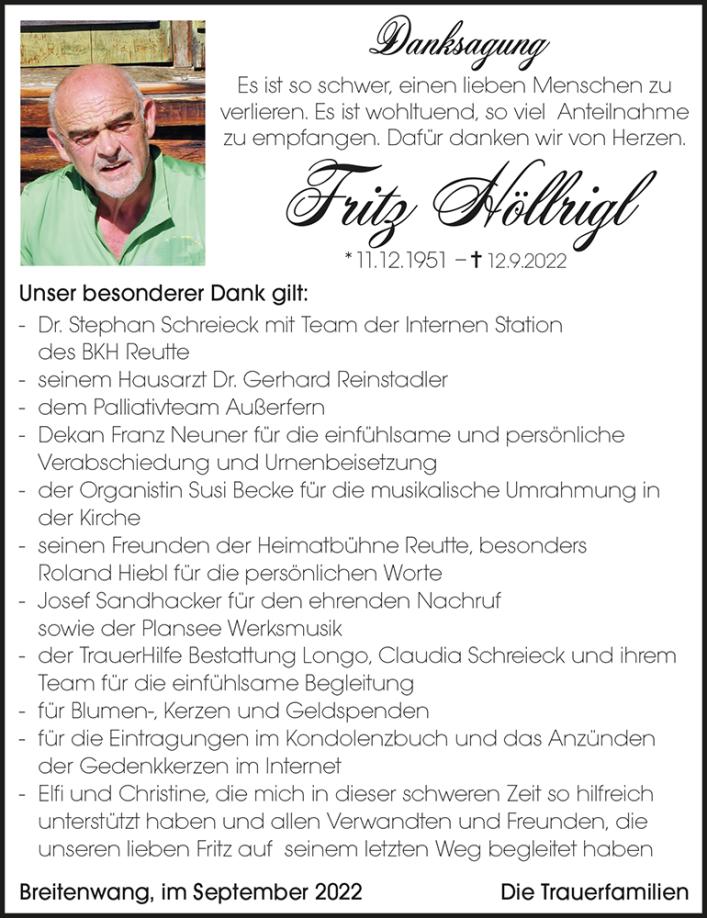 mit Bestürzung hab ich heute von Maria erfahren müssen, dass Fritz so früh verstorben ist. Denke noch immer gerne an die Zeit von der Reuttener Heimatbühne . Egal ob ans Theaterspielen oder die vielen wundervollen Ausflüge und Zusammenkünfte. Fritz war der Felsen in der Brandung und mit seinem Humor hat er vieles gemeistert. Ich wünsche Euch viel Kraft und Energie für die nächste Zeit.