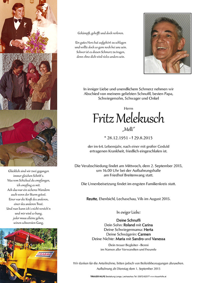 Lieber Fritz,denke oft an dich,vor allem an unsere Jugendzeit in der Südtiroler Siedlung in der wir schöne Zeiten zusammen verbrachten.Mir kommt es so vor als wäre es gestern gewesen.Kann es kaum glauben das du uns verlassen hast.Dein Freund Manfred !