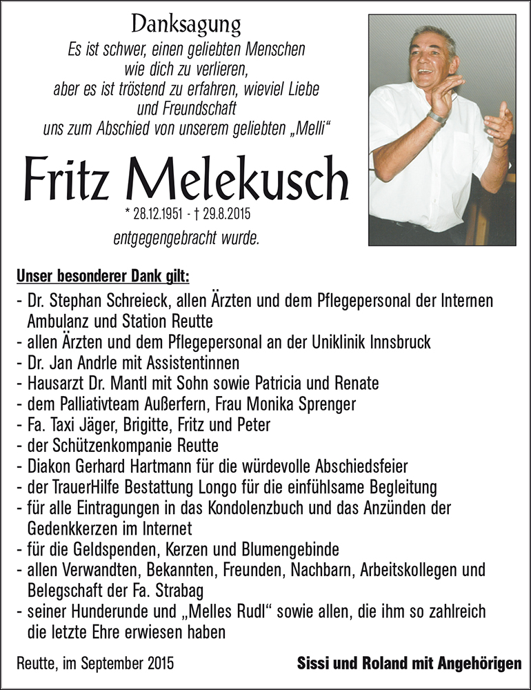 Wir danken euch allen für eure Freundschaft und euer Mitgefühl.