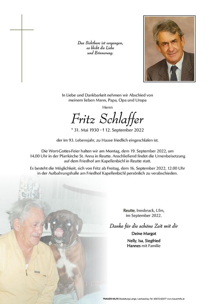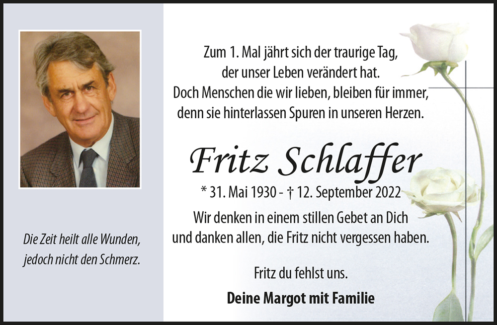 Ich bin traurig, verbinden mich so viel schöne Erinnerungen an Fritz. Ich war das Nachbarmädeli in Ehrwald, mit Nelly und Judith gespielt. Nun ist auch der Älteste aus der Schlafferfamilie gegangen. Möge Fritz seine Ruhe finden und euch von oben beschützen.