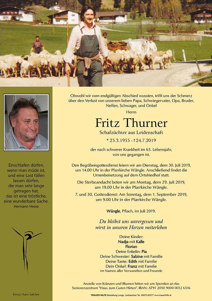 Aufrichtiges Beileid zum Heimgang von Fritz