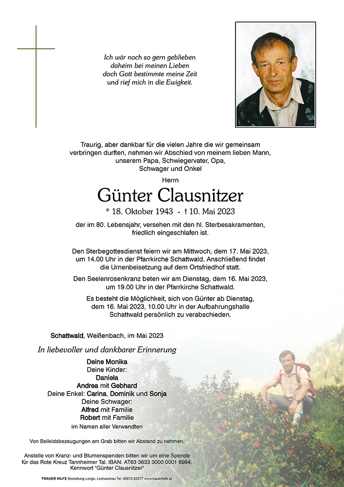 Wie gerne denke ich an die Zeit zurück, wo Ihr uns in Osttirol besucht habt. Es war für uns immer ein Erlebnis. Die gemeinsamen Spiele, das Pilze sammeln usw. Die witzige und lustige Art von Günter war für uns Kinder einzigartig und unvergesslich schön.