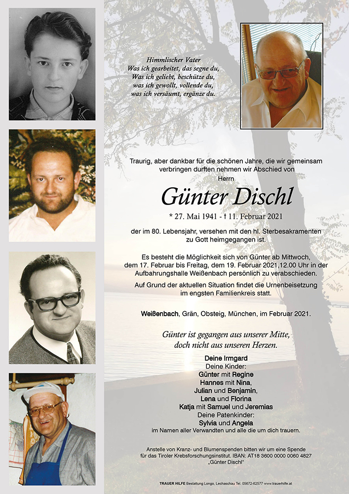 Herzliches Beileid zum Heimgang von eurem Günter. Es war immer sehr erfreulich, sich mit Günter an seinem Holzplatz am Feld zu unterhalten, Günter war immer so ein herzensguter und positiver Mensch. Er wird mir fehlen. Wünsche euch viel Kraft.