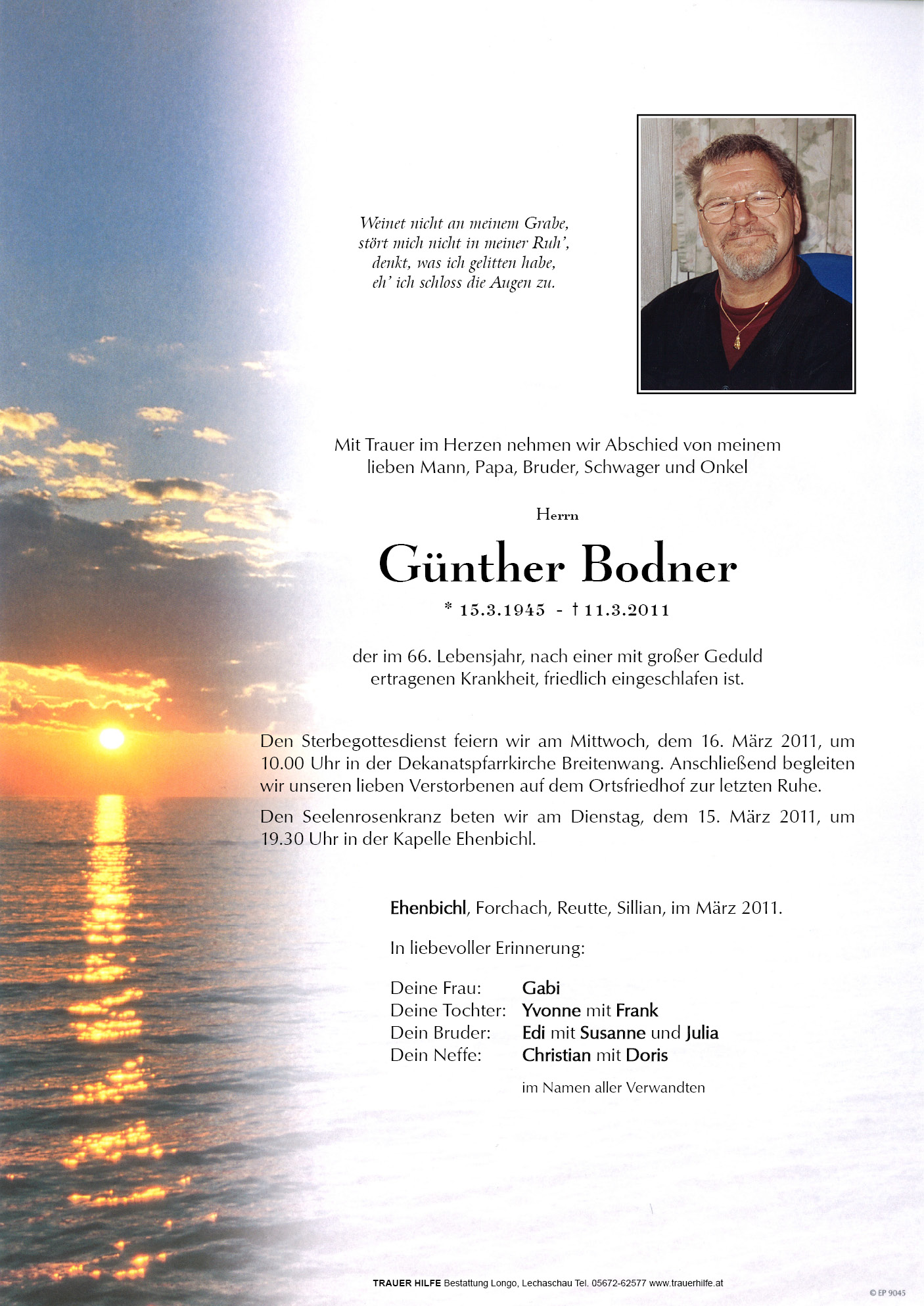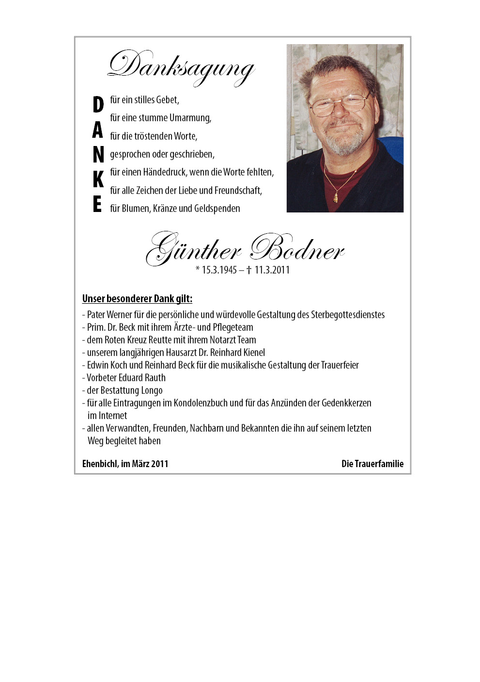 13.12.1901 11.03.2011 Ehenbichl Günther Bodner Action Parte Sterbebild Gedenkkerzen Kondolenzen Danksagung Parte Sterbebild Gedenkkerzen Kondolenzen Danksagung Parte herunterladen Sterbebild herunterladen Gedenkkerzen für Günther Bodner 7 Einträge Kerze anzünden A Liachtle für di zum Jahresgedenken Marlen In liebem Gedenken Raimund in liebem Gedenken Ehrentraud Zum Gedenken Marlen m. Familie im Andenken, Martina Fam. Kößler Werner Ihre Gedenkkerze fürGünther Bodner Ihr Name* Farbe auswählen Ihre Nachricht oder Name* E-Mail-Adresse* Mit dem Klicken auf "Kerze anzünden" erklären Sie sich mit unseren Datenschutzbestimmungen einverstanden. Kondolenzbuch für Günther Bodner 0 Einträge Kondolenz verfassen Ihr Abschiedsgruß an Günther Bodner Ihr Name* E-Mail-Adresse* Ihre Nachricht* Mit dem Klicken auf "Gruß absenden" erklären Sie sich mit unseren Datenschutzbestimmungen einverstanden. Danksagung herunterladen