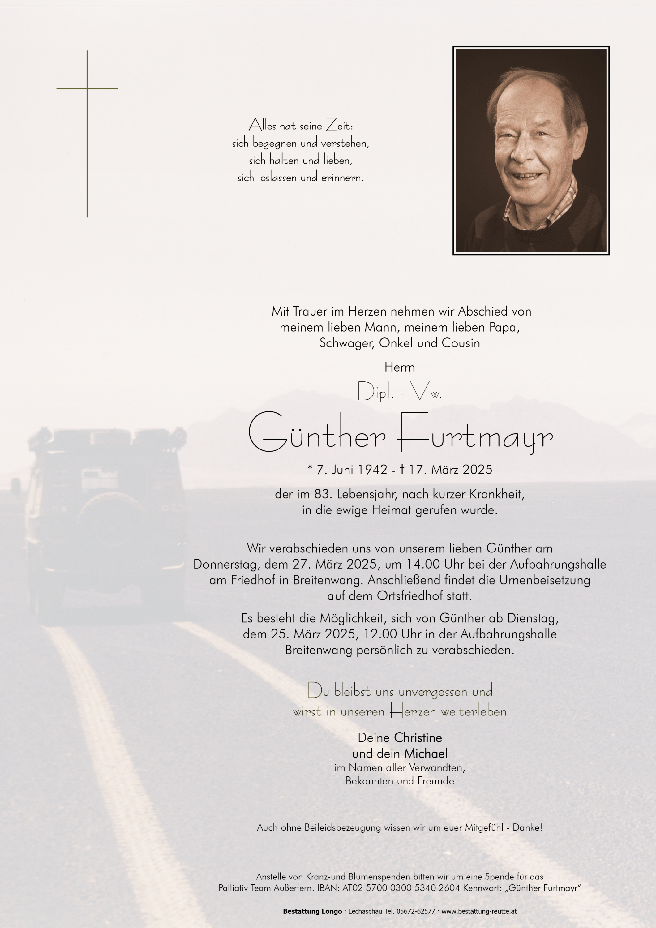 Günther hat sich in die Obhut Gottes gegeben, wohlverdient wird er Ruhe und Geborgenheit finden.