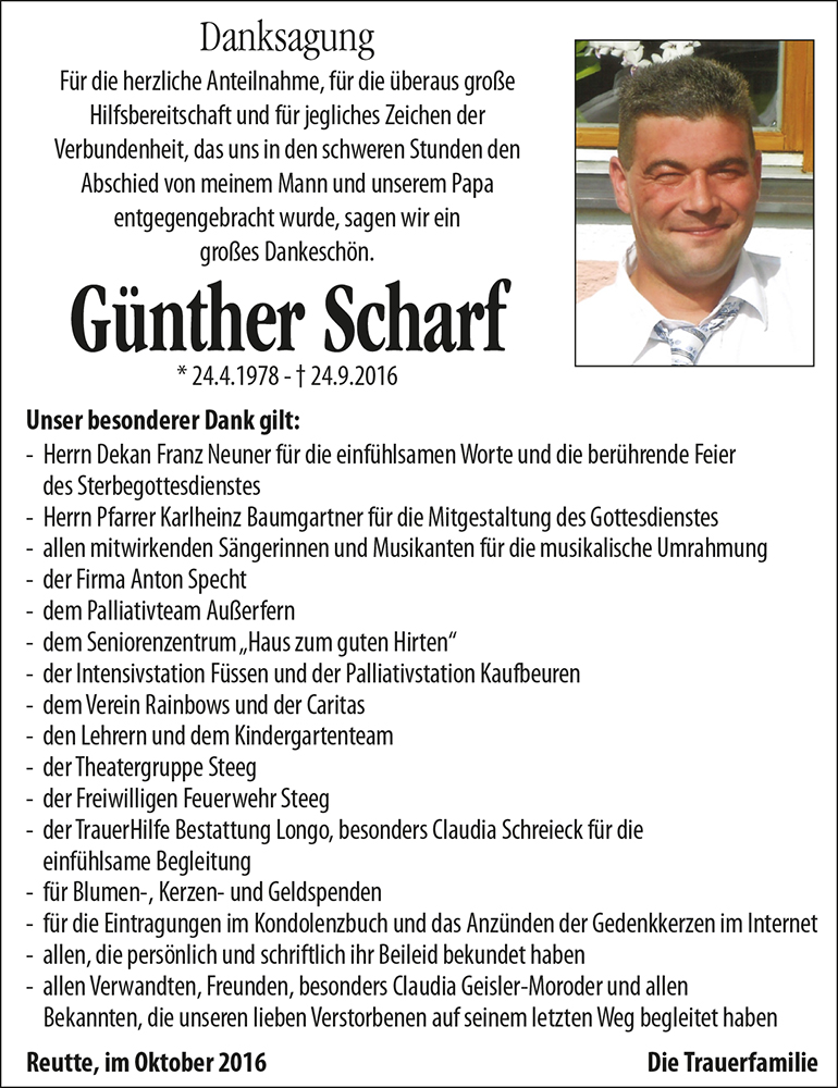 viel zu früh ist Günter von uns gegangen, und hat nun die Lichtung am Ende des Weges erreicht. Wir sind tief traurig über den Verlust eines jungen Menschenlebens, und wir sind in Gedanken bei Euch allen, die diesen schmerzlichen Verlust jeden Tag spüren. Seid Euch eines gewiss, Günter, Dein Mann, Euer Vater, der Euch über alles liebte, wird an der Lichtung, am Ende des Weges auf Euch warten, denn Liebe hat keine Grenzen. In liebevollen Gedenken an einen Guten Ehemann und Vater sind wir bei Euch. Dietrich&Dolores mit unseren Söhnen Jakob&Leo