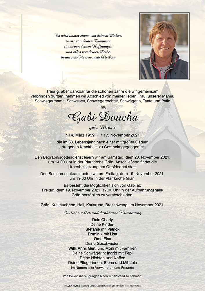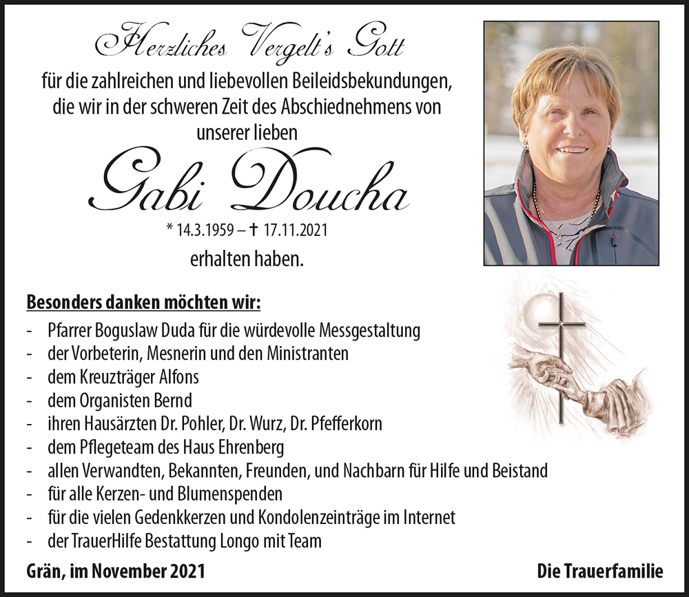 Kondolenzbuch fĂŒr Gabi Doucha