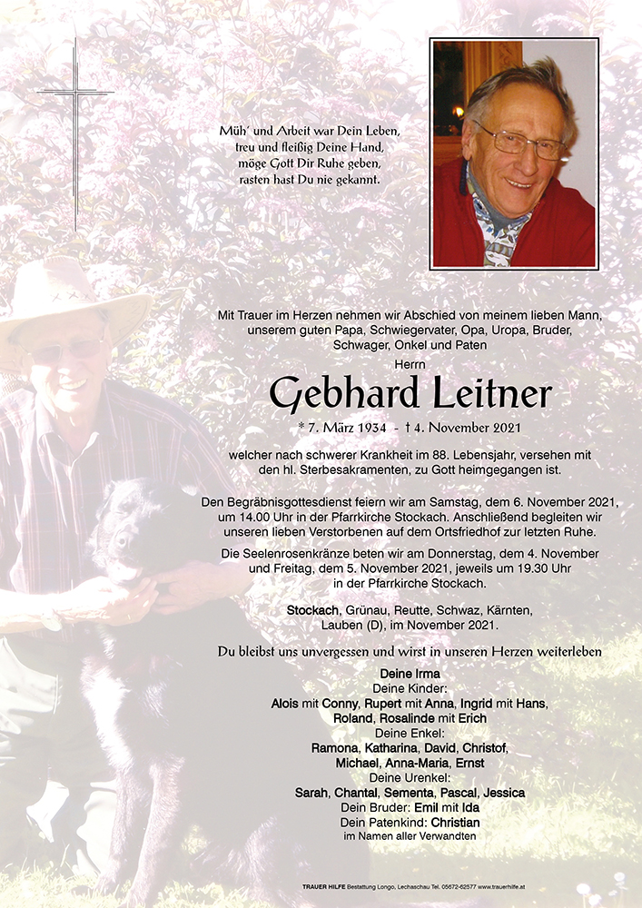 Liebe. Trauerfamilie Leitner 04.11.2021 um 20:20 Uhr