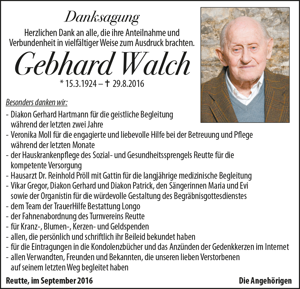 Kondolenzbuch für Gebhard Walch