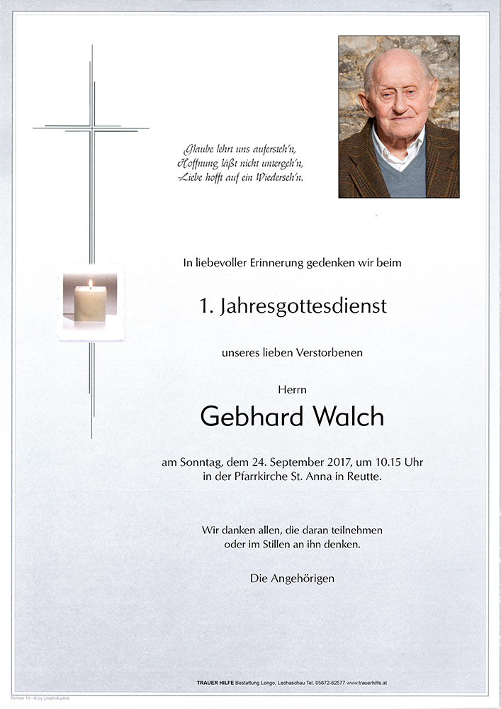Gedenkkerzen für Gebhard Walch