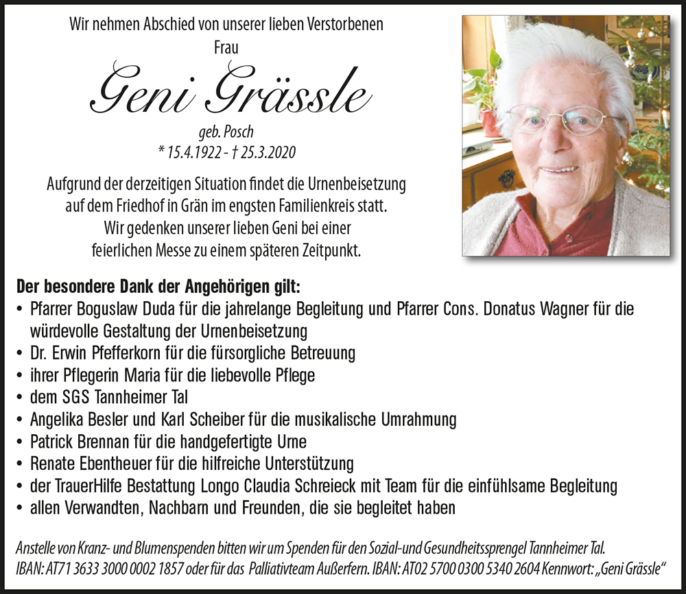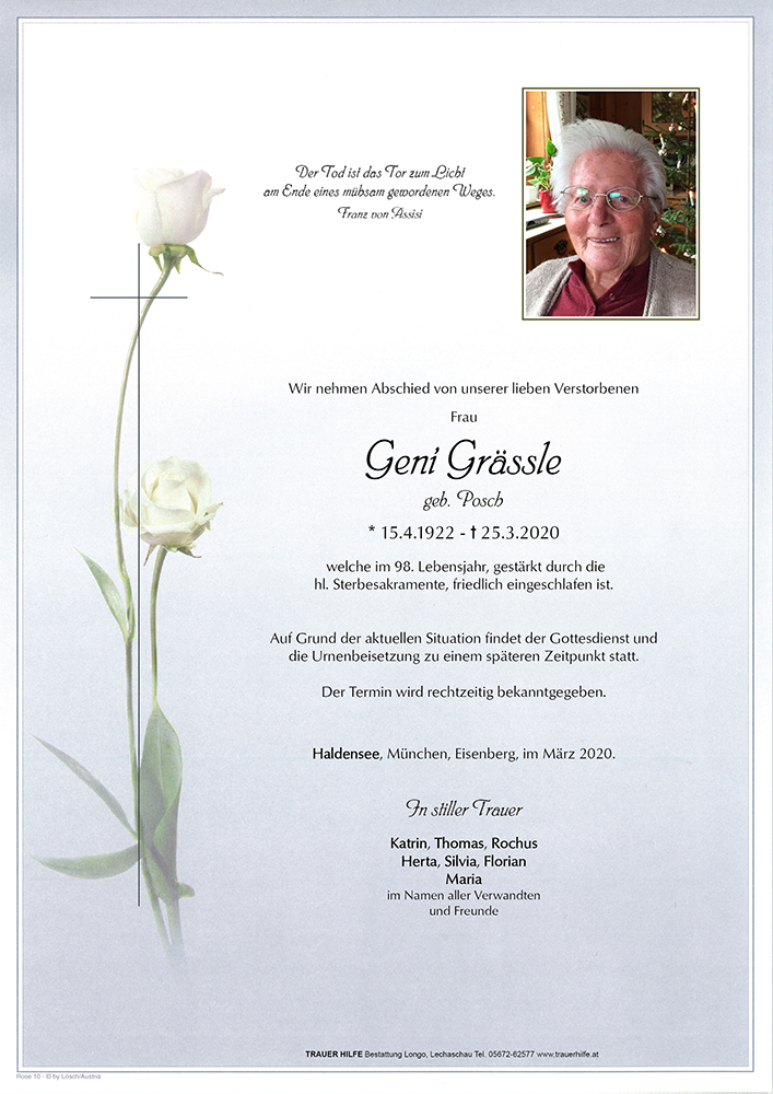 Kondolenzbuch für Geni Grässle