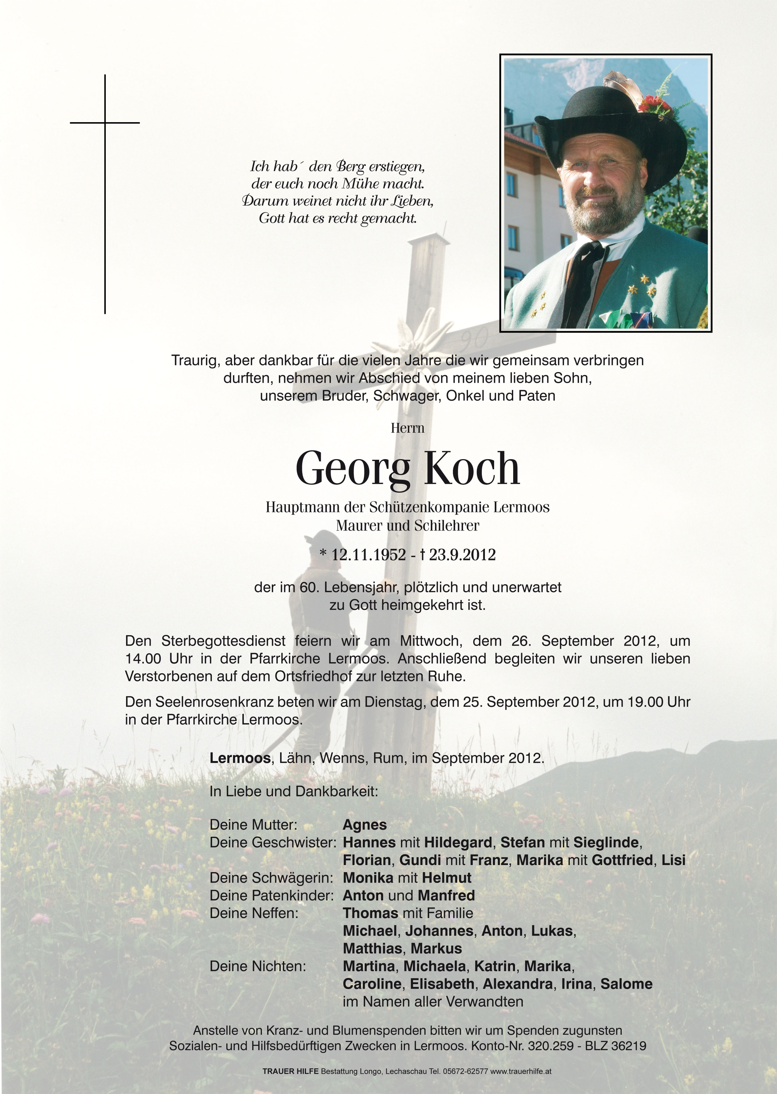 Meine aufrichtige Anteilnahme und mein tiefstes Mitgefuehl zum Heimgang Georgs. Ich wünsche Euch Trost und Unterstützung in dieser schweren Zeit. In Gedanken bin ich bei Euch!!!