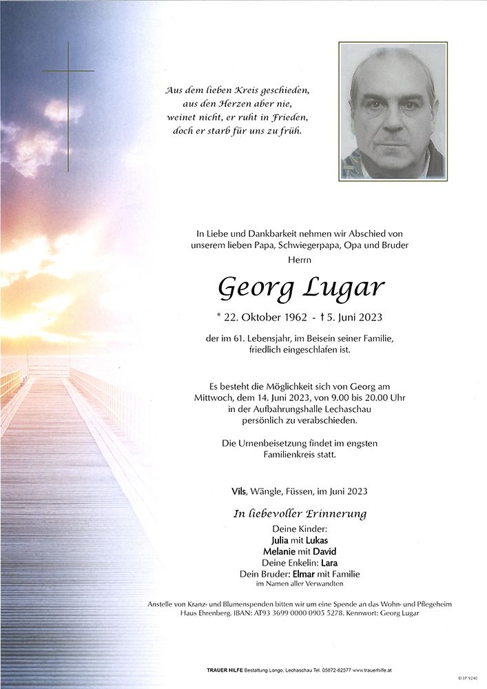 Kondolenzbuch für Georg Lugar