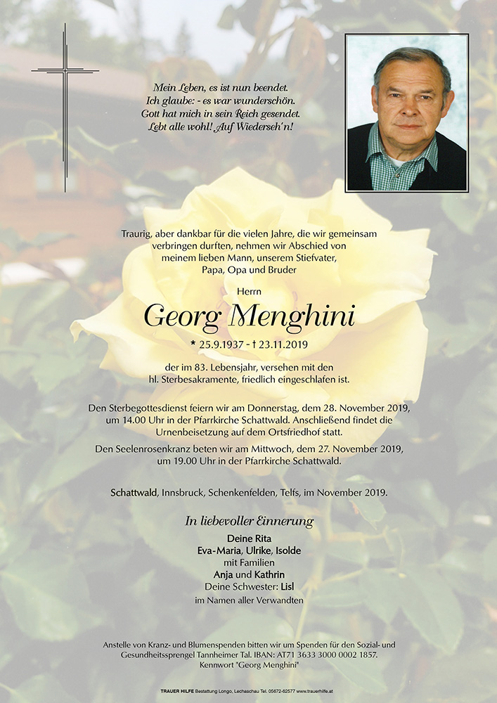 25.09.1937 23.11.2019 Schattwald Georg Menghini Action Parte Sterbebild Gedenkkerzen Kondolenzen Parte Sterbebild Gedenkkerzen Kondolenzen Parte herunterladen Sterbebild herunterladen Gedenkkerzen für Georg Menghini 131 Einträge Kerze anzünden Fam. Roland Fiegenschuh Fam. Roland Fiegenschuh Fam. Roland Fiegenschuh Roland u. Andrea Pirschner-Wötzer Chistiana und Michael Christoph Anton Eberle Fam. Roland Fiegenschuh Daniela Leuschner Nadine Schneider Verena Scheucher Gerlinde mit Familie Familie Miriam Ruepp Holzer Claudia Familie Lang Grän Paul Seitz mit Familie Haus Ehrenberg WB 4 Chistiana und Michael Doris, Gebhard u. Elias Ruhe in Frieden Franz und Margit Andi und Elisabeth Reinstadler Hans & Edith Reichle Marina & Gerold Besler Andrea u. Peter Poldi & Petra Fam. Harald u. Barbara Schatz Manfred, Silvia und Michael Johann Sabine Leonie & Hannes Birgit und Wolfgang Glätzle Fam. Schneider Gerhard Eisele Judith u. Seppl- Ein Licht für euch alle Resi & Helmut Monika & Christian Lucia und Josef Lutz Gebi und Simone Birgit Rief Midi Norbert&Silke mit Nico Birgit Rid m. Familie Fuchs Sabine mit Fam. schlafe wohl Fam. Rief Maria Fam. Werner u. Roland Gehring Burgenland Moni Robert u. Maria Lenz Ruhe sanft Carmen u. Gerald Conni, Martin, Sandro&Carmen Salome mit Familie Hans & Elisabeth Praschberger Alexandra und Thomas mit Fam. Hannes & Brunhilde Fam Ranalter Neustift Stubaital Sonja und Roland mit Fam. Anna & Ingo Luisa und Roswitha Durst Karl Neuner Gerda Singer Neuner Hanne und Heinz Moll Petra Waibel mit Fam. Inge u. Pepi Reinstadler Eve & Robert mit Niclas und Jonathan Ruhe in Frieden Evelyn und Bernhard Fam. Barbara u. Hansjörg Stotter Jürgen & Sabine mit Emma Florian & Christiane mit Kinder Brigitte & Othmar Babl Fam. Wiedemann mit Brigitte ein Licht für dich Christine und Raini mit Oskar Marianne Tannheimer Sandra & Wolfi mit Anna, Jana & Elena Roland u. Andrea Pirschner-Wötzer Alexandra m. Familie Sieglinde u. Hermann Zobl Familienverband Schattwald Marco & Petra Ried a Liachtl für di, Sonja Gerald u. Marianne mit Fam. Fam. Birgit&Christian Stecher Dietlinde & Harald mit Familie Fam. Peter u. Heidi Schneier Sepp & Edith Sint Elli Köpfle-Holl m. Fam. Loni Tannheimer Fam. Klaus u. Tamara Hornstein Ruhe in Frieden Stephan & Viktoria Daniela Leuschner Ariane und Mathias Wegmann Das Team des SGS Außerfern Wolfgang Stecher, Ruhe in Frieden Beatrice mit René Hubert und Carla Jana Kornelia und Alois Lechleitner Durst Oliver u. Martha Dali und Diana Fam. DEFOUR Alain & Alexandra Petra und Martin mit Emely und Nevio Luitpold Barbara u. Mario Rief Gerald&Maria mit Tobias&Hanna Herbert und Marion Fam. Schedle Thomas Fam. Schedle Thomas Fam. Schedle Thomas Fam. Dietmar und Karin Rädler Ruhe in Frieden Christian&AnitaGreger Katrin und Andreas Schedle Stefan & Steffi mit Ann-Sophie & Julian In gedenken Werner Eisenbeutl Tom Barbara und Dieter Rosmarie und Rudi Rief Walter& Margret Burkert Lucas Gezzele Theresia & Heinrich Friede/Freude werde dir zuteil Fam. Raimund u. Rosmarie Rief Franz und Sabina Gottfried und Karin Novacek Fam. Ruepp Peter und Maria Alexandra & Bernd, mit Leandro u. Samu Renate u. Walter Ruepp Sonja & Andi Claudia Schreieck Fam. Roland Fiegenschuh Norbert & Margit Schneider Claudia Hohenrainer Michi Hosp TrauerHilfe Bestattung Longo Ihre Gedenkkerze fürGeorg Menghini Ihr Name* Farbe auswählen Ihre Nachricht oder Name* E-Mail-Adresse* Mit dem Klicken auf "Kerze anzünden" erklären Sie sich mit unseren Datenschutzbestimmungen einverstanden. Kondolenzbuch für Georg Menghini 0 Einträge Kondolenz verfassen Ihr Abschiedsgruß an Georg Menghini Ihr Name* E-Mail-Adresse* Ihre Nachricht* Mit dem Klicken auf "Gruß absenden" erklären Sie sich mit unseren Datenschutzbestimmungen einverstanden.