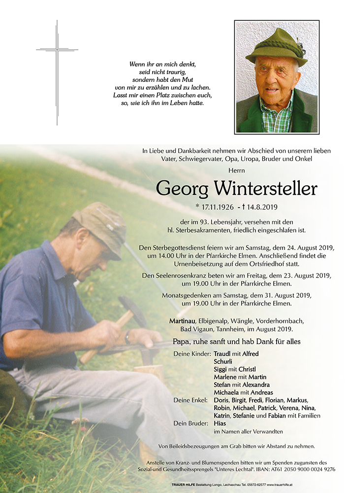 17.11.1926 14.08.2019 Martinau Georg Wintersteller Action Parte Sterbebild Gedenkkerzen Kondolenzen Parte Sterbebild Gedenkkerzen Kondolenzen Parte herunterladen Sterbebild herunterladen Gedenkkerzen für Georg Wintersteller 248 Einträge Kerze anzünden Michi Michi A Geburtstagskerzle von Michi A Geburtstagskerzle von Michi A Geburtstagskerzle von Michi Deine Michi Michi Michi Michi Michi Michi Michi Michi Michi Michi Michi Michi A Geburtstagskerzle Michi Michi Michi Zum 4. Jahrtage. Michi und Andi Michi und Andi Zum 4. Jahrtage. Michi und Andi Michi und Andi Zum 4. Jahrtage. Michi und Andi Michi und Andi Zum 4. Jahrtage. Michi und Andi Zum 4. Jahrtage. Michi und Andi Michi und Andi Michi und Andi Michi und Andi Michi und Andi Michi und Andi Michi und Andi Michi und Andi Michi und Andi Michi und Andi Michi und Andi Michi und Andi Michi und Andi Michi und Andi Zum 2. Jahrtag. Michi und Andi. Zum 2. Jahrtag. Michi und Andi. Zum 2. Jahrtag. Michi und Andi. Zum 2. Jahrtag. Michi und Andi. Zum 2. Jahrtag. Michi und Andi. Michi und Andi Michi und Andi Michi und Andi Michi und Andi Michi und Andi Michi und Andi Michi und Andi Michi und Andi A Josefikerzle für Papa. Michi und Andi A Josefikerzle für Papa. Michi und Andi Michi und Andi Michi und Andi Michi und Andi Michi und Andi Doris und Thomas Michi und Andi Doris und Thomas Michi und Andi Doris und Thomas A Geburtstsgskerze für dich. Michi und Andi Doris und Thomas Michi und Andi Doris und Thomas Michi und Andi Doris und Thomas Michi und Andi Doris und Thomas Michi und Andi Doris und Thomas Für Papa Doris und Thomas Gedenkkerze Zum 1. Jahrtag Michi und Andi Doris und Thomas Für Papa In Gedanken bei dir. Doris und Thomas In Gedanken bei dir. Doris und Thomas Denke immer an dich Doris und Thomas Denke immer an dich Doris und Thomas Fam. Maldoner-Jäger Doris und Thomas Doris und Thomas Doris und Thomas Doris und Thomas Doris und Thomas Doris und Thomas Doris und Thomas Für Papa Doris und Thomas Doris und Thomas Doris und Thomas Doris und Thomas Doris und Thomas Doris und Thomas In ewiger Verbundenheit Alles Liebe zum Geburtstag Doris und Thomas Michi Senioren Häselgehr Doris und Thomas Für Papa und Mama. Doris und Thomas Für Mama und Papa. Doris und Thomas Ruhet in Frieden Ruhe in Frieden Immer bei dir Doris und Thomas Ein Licht leuchte dir Herzliches Beileid Angela Manfred&Claudia Holzmann Ruhe sanft . Fam. Lotte und Manfred Fertner Patrick und Nicole mit Julia Ricarda und Samuel Opa, Ruhe in Frieden Doris und Thomas Mario u Barbara Rief Auf immer und Ewig Hartwig Wanner Ruhe in Frieden Erich Mair Ruhe in Frieden Edith & Erna Birgit und Johannes Seitz Daniela & Viktoria habs fein Jakob Uhrmacher´s Erich Manuela und Sepp Schedler, Hägerau Markus mit Edith Hans und Waltraud Gehring Fam. Karin & Patrick Babl Simone u Horst Weirather Manfred&Claudia Holzmann Renate & Elmar Mair Elfrieda u. Günter Nenning Fam. Lotte und Manfred Fertner Ruhe in Frieden Conni, Martin, Sandro&Carmen Hermann u. Marietta mit Kinder Frischauf Martin Hildegard u. Franz Langegger Opa Ruhe in Frieden Birgit u. Bastian Hartl Kaufmann Werner und Karin Kößler Marianne und Seppl Pitschnau Petra und Paul Grässle Namlos Alexandra Wötzer mit Familie Claudia und Manfred Fam. Bader Hartmut u. Angela Bretschner Alber Gottfried Irma und Dagmar mit Fam. Samuel und Elisa Ricarda und Didi Martina Storf Markus & Sabine Eiblhuber Oktavio und Christine Außerhofer Andrea und Herbert Frischmann Wir denken an dich. Stefan und Alex Ruth Isenburg Fam. Hartl u. Roswitha Singer Martin Lechleitner Traudl Daliot Wilfried und Heidi mit Buben Roland und Claudia Strobl Caro & Simon Claudia und Erwin Fill Adrian und Gerti Eberhard Christina & Arnold mit Kindern Richard Schrötter Elisabeth schlaffer Werner u. Karin Kleinhans Inge u. Gabriel m. Kinder Christl Ettinger Walter Burkert mit Familie Ernst Zotz Herbert und Roswitha Lechleitner Falger Johanna Elbigenalp Anja Lebe wohl Schlichtherle Werner & Hanni Nicole, Rainer und Angelina Tetzner Fam. Franz u. Irmgard Gruber Das Palliativ Team Außerfern Fam. Roland Santa Manuela Ruepp Hab\'s gut. . . . . . Michi. Herbert - Ruhe in Frieden Fam. Martin Hosp Walli und Michael Hosp Tatjana mit Familie Ein Licht für deine Familie Elmar und Grete Team des SGS Ausserfern Fam. Lothar und Manuela Ennemoser Stefan & Sabine Alois&Margret Herbert und Ruth Larcher Patrick und Nicole mit Julia Fam. Spitzer Doris und Thomas Ricarda und Samuel Opa, Ruhe in Frieden Klaudia & Reinhard Marco & Petra Ried Fam. Robert Schmidt Hannes & Brunhilde Carmen und Hannes mit Familie Ruhe in Frieden Otto Koch Fam. Paul und Annemarie Kaiser Ruhe in Frieden Ruhe in Frieden Familie Beidi Karl und Gerda Singer Neuner Fam. Ruepp Peter und Maria Norbert u. Silfia Beirer Fam. Reinhard Lechleitner Fam. Marlies u. Rainer Heel Maria Lang, Häselgehr Roland & Claudia Lorenz Edith Scheiber Gruber Julia Andi, Moni, Samira u. Tamara Larcher Fam. Huberta & Otto Drexel Vhb Fam. Martina u. Ossi Pescosta Gerti u. Sabine Ennemoser Tina, Markus und Helena Cilli und Hermann Kofler Martin u. Yvonne Barbist Manuela, Dominik und Daniel Senioren Häselgehr Ein Licht aus Klagenfurt Claudia Hohenrainer Claudia Schreieck TrauerHilfe Bestattung Longo Ihre Gedenkkerze fürGeorg Wintersteller Ihr Name* Farbe auswählen Ihre Nachricht oder Name* E-Mail-Adresse* Mit dem Klicken auf "Kerze anzünden" erklären Sie sich mit unseren Datenschutzbestimmungen einverstanden. Kondolenzbuch für Georg Wintersteller 1 Eintrag Kondolenz verfassen Liebe Michi,liebe Angehörige. Wir möchten euch unser tiefstes Beileid ausdrücken. Wir werden euren Papa in lieber Erinnerung behalten. Daniela, Viktoria & Jakob Daniela Ginther 23.08.2019 um 10:11 Uhr Ihr Abschiedsgruß an Georg Wintersteller Ihr Name* E-Mail-Adresse* Ihre Nachricht* Mit dem Klicken auf "Gruß absenden" erklären Sie sich mit unseren Datenschutzbestimmungen einverstanden.