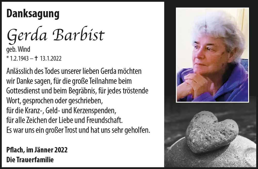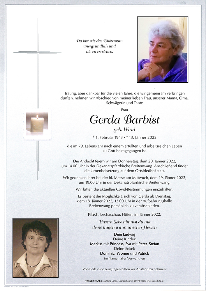 Kondolenzbuch für Gerda Barbist