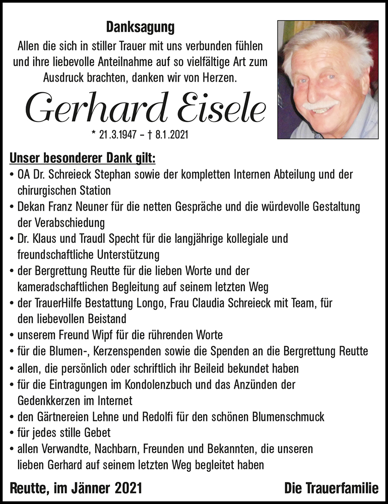 Als Freund und Kollege bleibt uns Gerhard unvergessen.