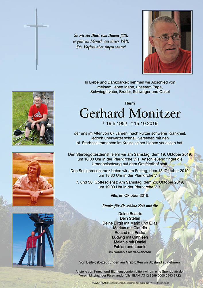 Kondolenzbuch für Gerhard Monitzer