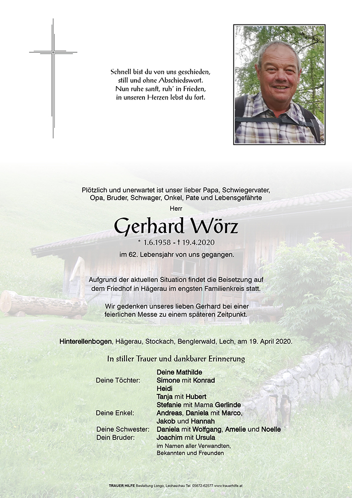 Wir waren und sind tief bestürzt als wir vom plötzlichen Tod von Gerhard erfahren haben. Wir wünschen euch viel Kraft in dieser schweren Zeit!