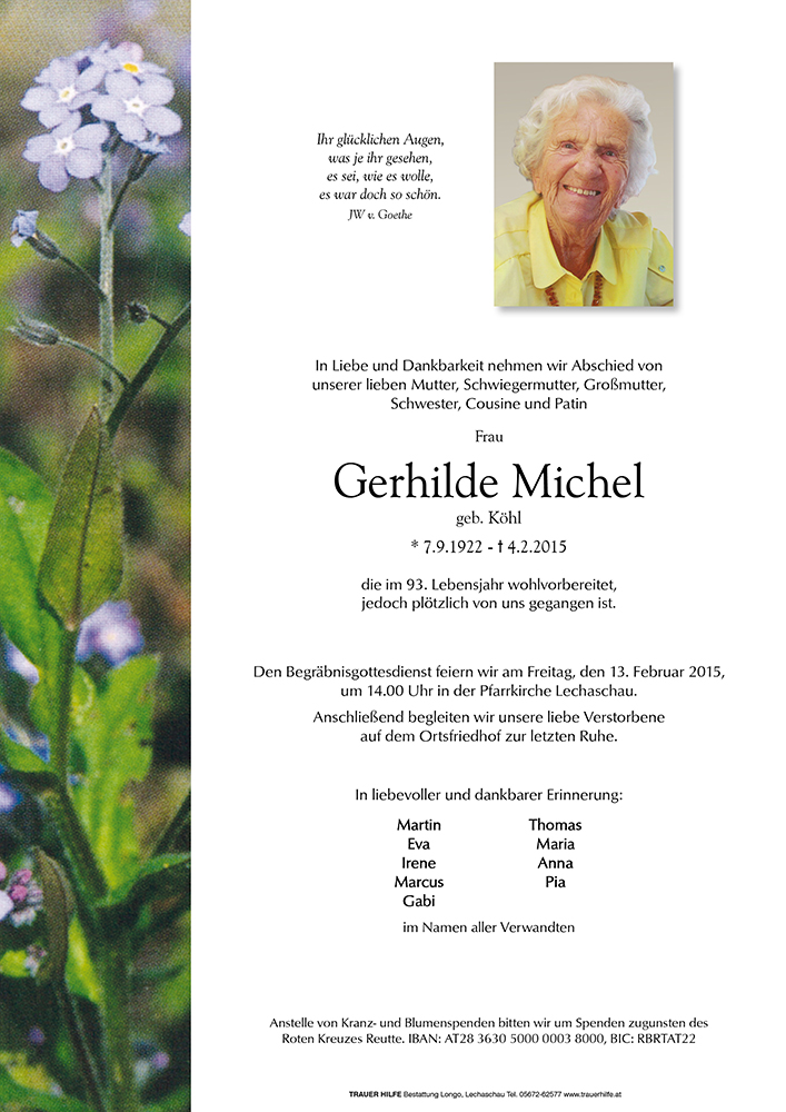 Meine liebevollen Gedanken begleiten dich,euch beim Begräbnis eurer Mutter und Großmutter am Freitag den 13.2.