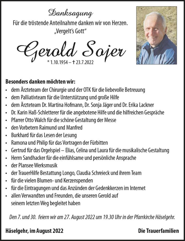 Aufrichtige Anteilnahme Sojer Marianne mit Fa