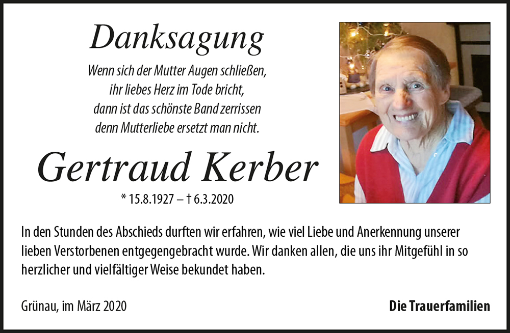 Kondolenzbuch für Gertraud Kerber