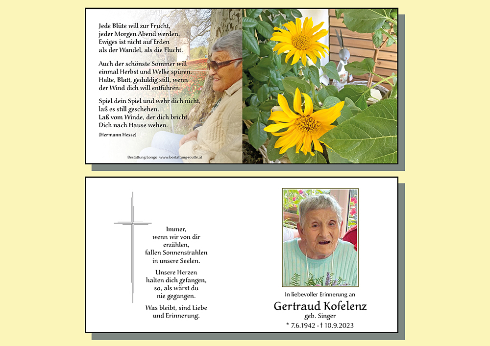 unsere aufrichtige Anteilnahme am Ableben eurer Mutter entbieten euch Josef und Walburga