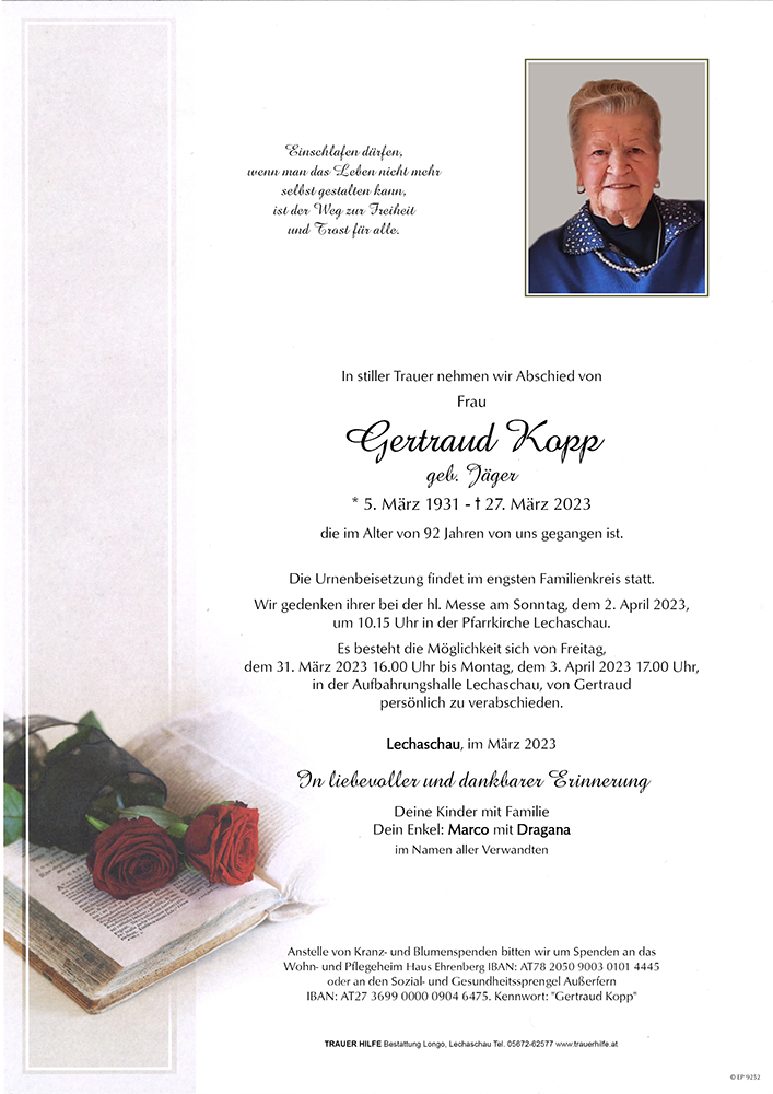 unser aufrichtiges Mitgefühl zum Verlust eurer Mama und Oma