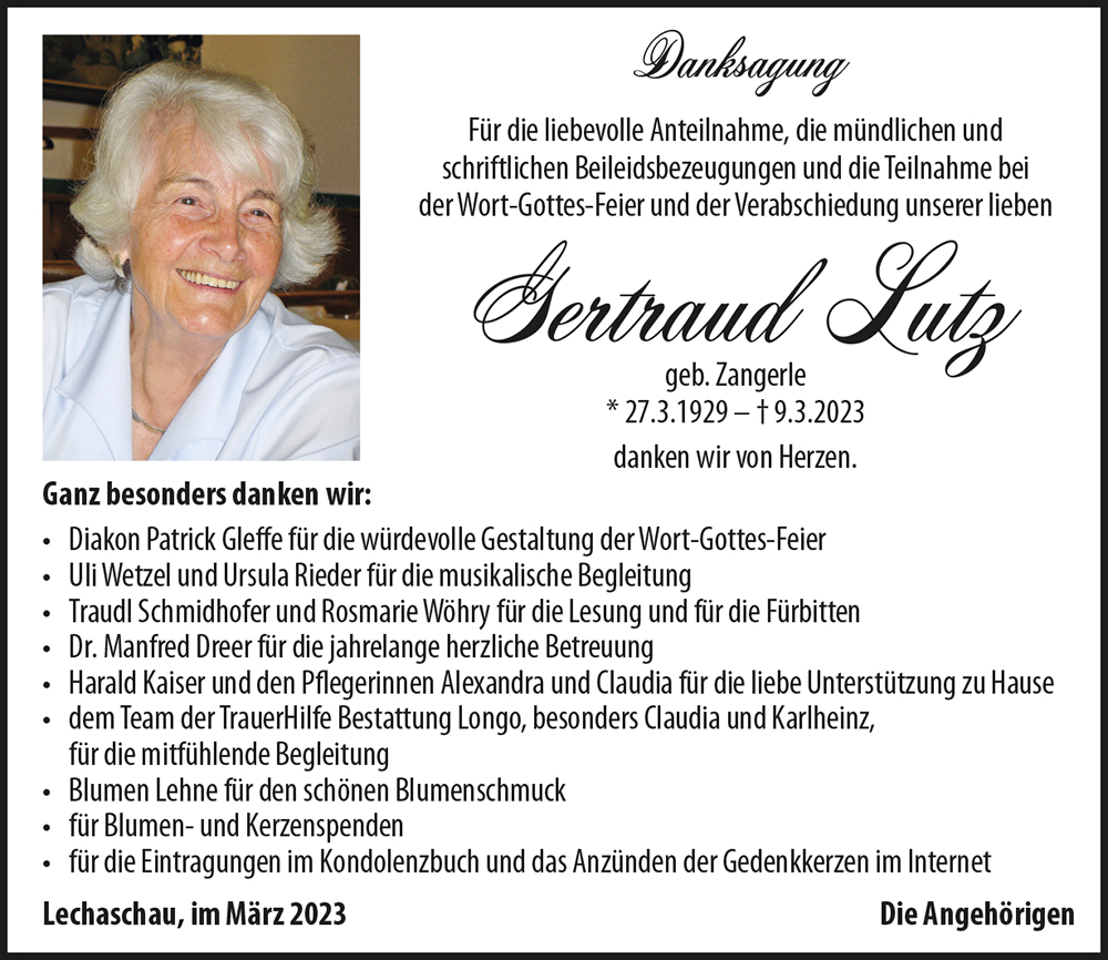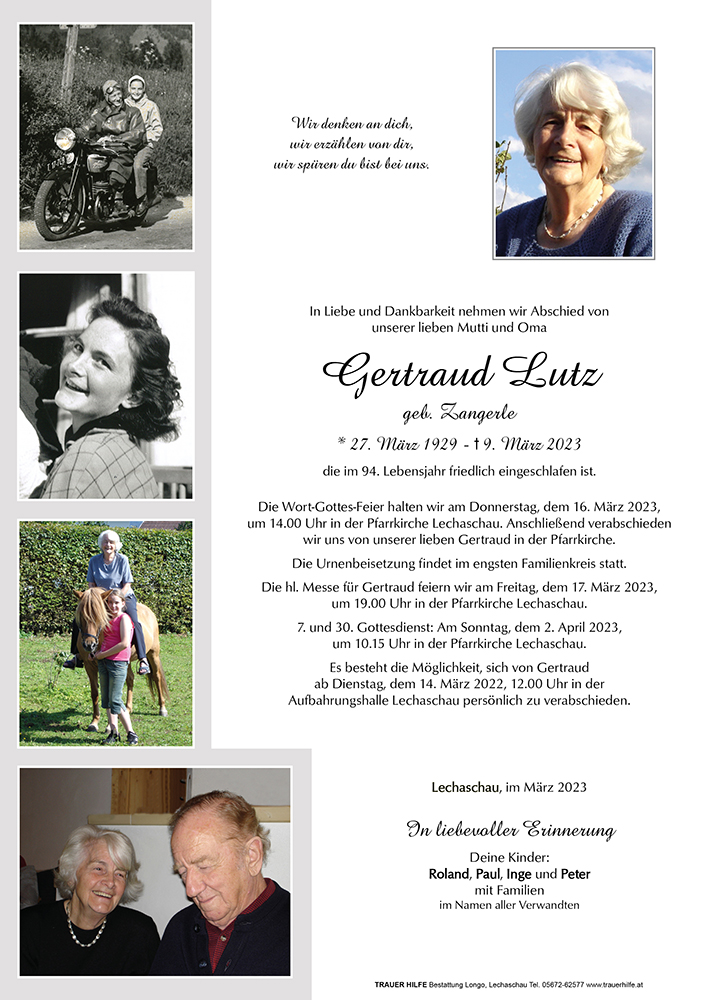 Kondolenzbuch fĂŒr Gertraud Lutz