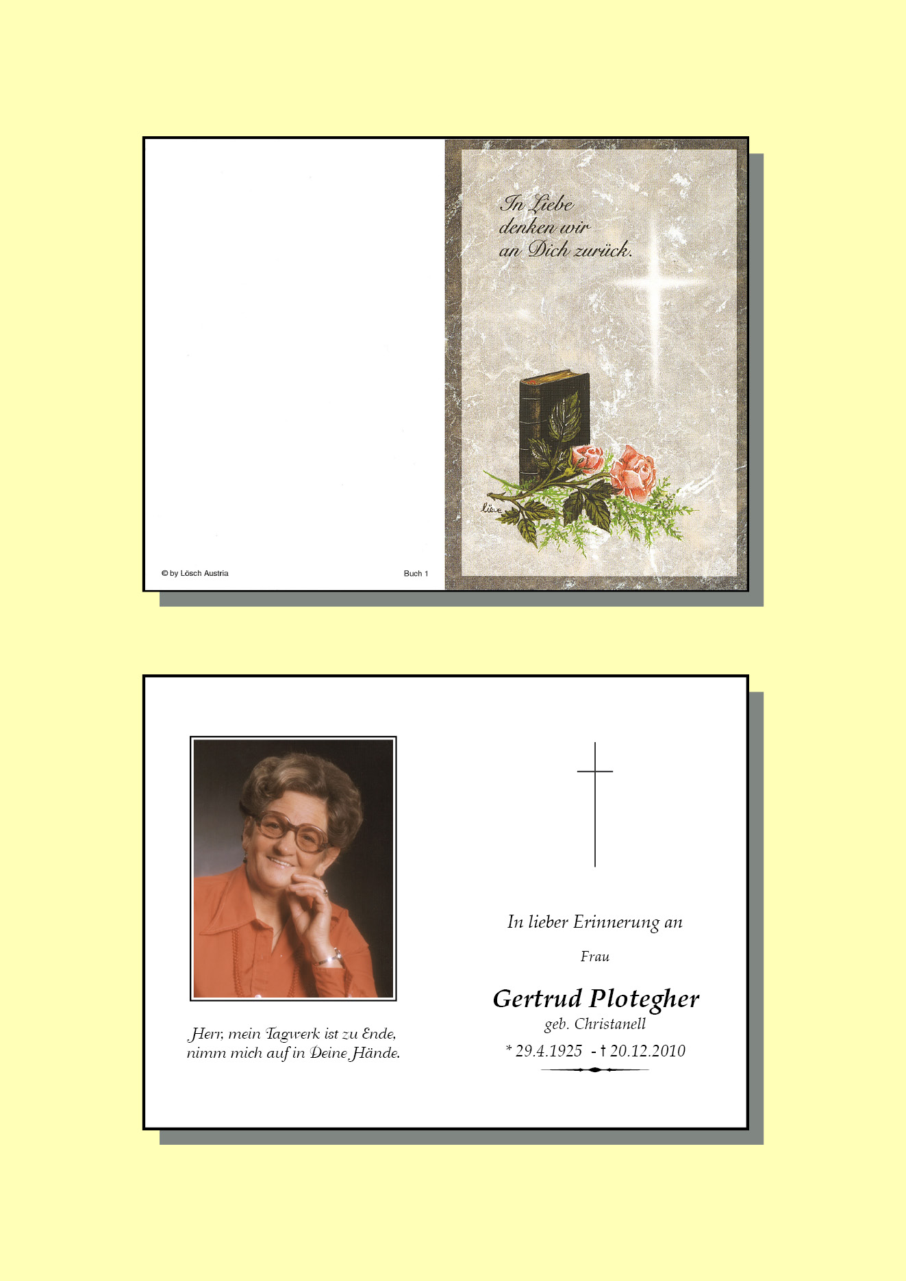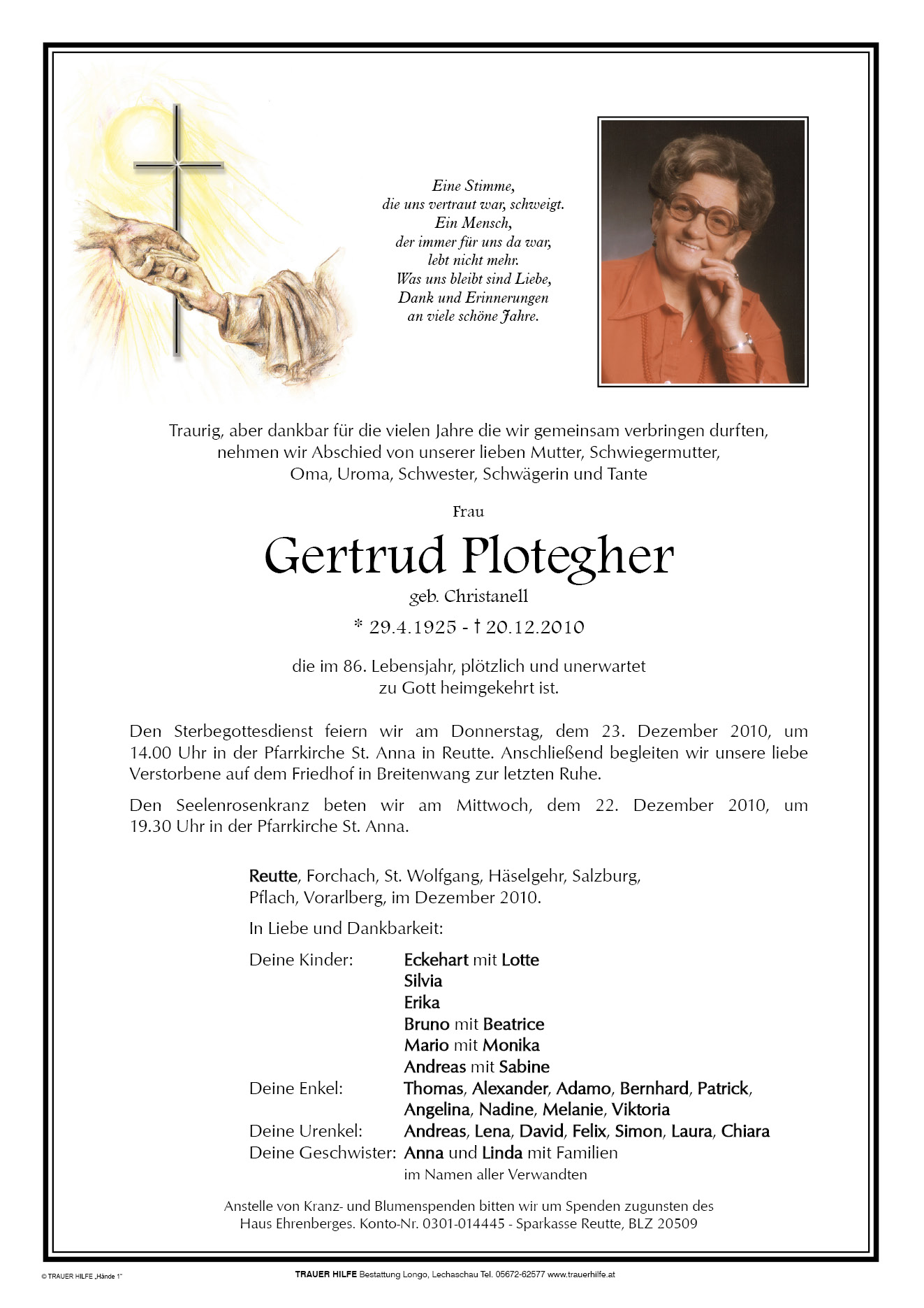 13.12.1901 20.12.2010 Reutte Gertraud Plotegher Action Parte Sterbebild Gedenkkerzen Kondolenzen Parte Sterbebild Gedenkkerzen Kondolenzen Parte herunterladen Sterbebild herunterladen Gedenkkerzen für Gertraud Plotegher 3 Einträge Kerze anzünden Familie MEẞMER Gerhard & Ingrid Familie MEẞMER Gerhard & Ingrid Ein Licht für Dich Ihre Gedenkkerze fürGertraud Plotegher Ihr Name* Farbe auswählen Ihre Nachricht oder Name* E-Mail-Adresse* Mit dem Klicken auf "Kerze anzünden" erklären Sie sich mit unseren Datenschutzbestimmungen einverstanden. Kondolenzbuch für Gertraud Plotegher 0 Einträge Kondolenz verfassen Ihr Abschiedsgruß an Gertraud Plotegher Ihr Name* E-Mail-Adresse* Ihre Nachricht* Mit dem Klicken auf "Gruß absenden" erklären Sie sich mit unseren Datenschutzbestimmungen einverstanden.