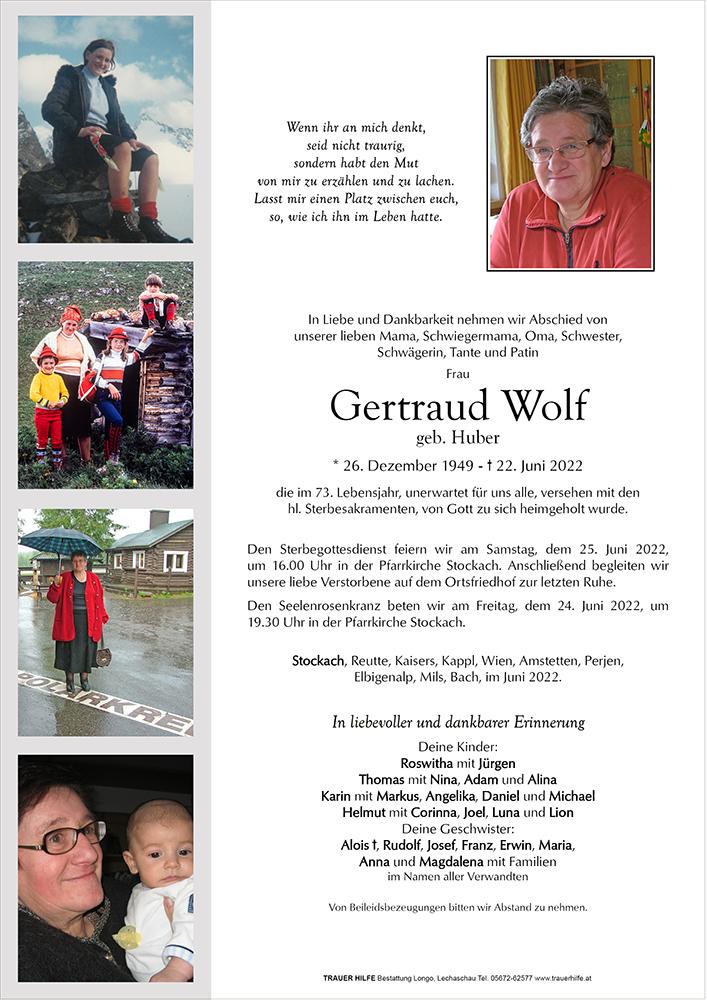 In stillem Gedenken, Fam. Paul Huber, Kappl