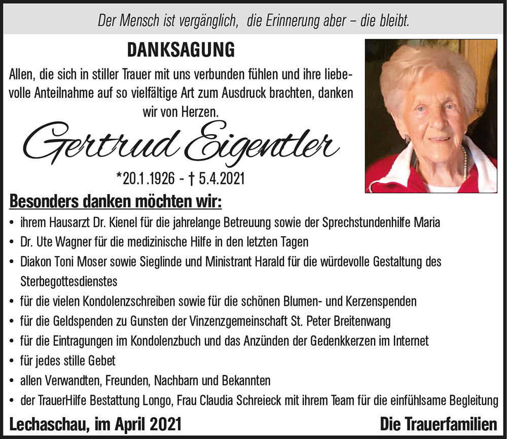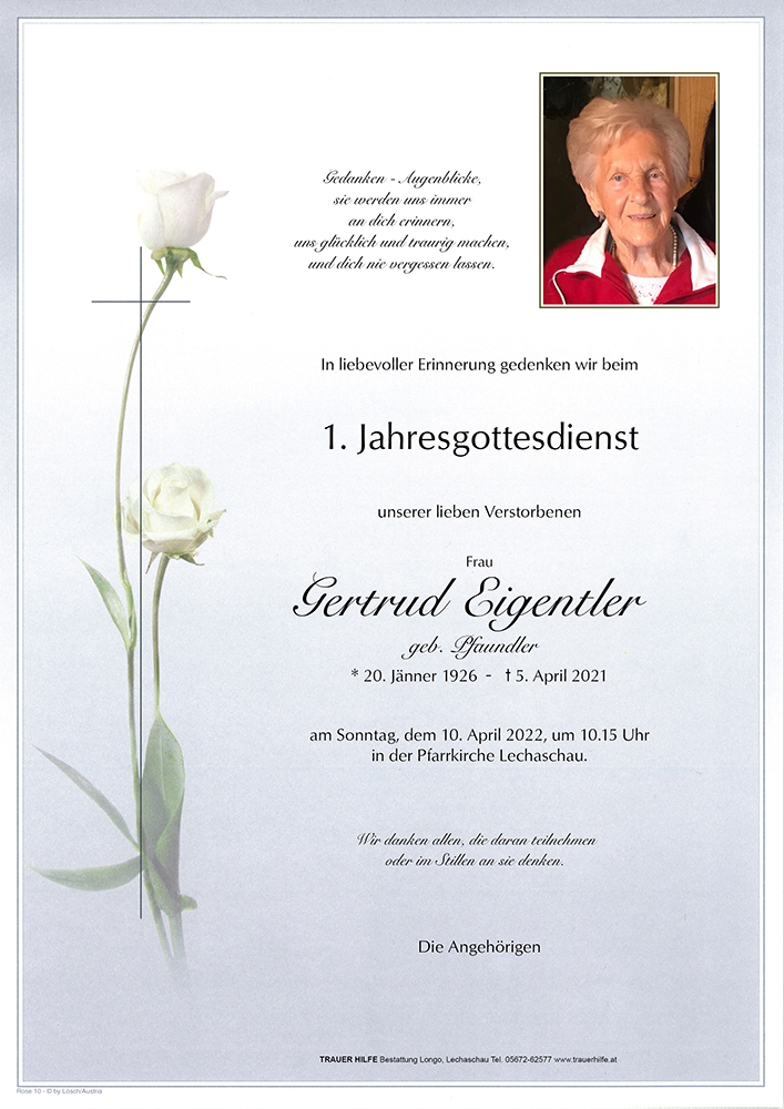 Kondolenzbuch für Gertrud Eigentler