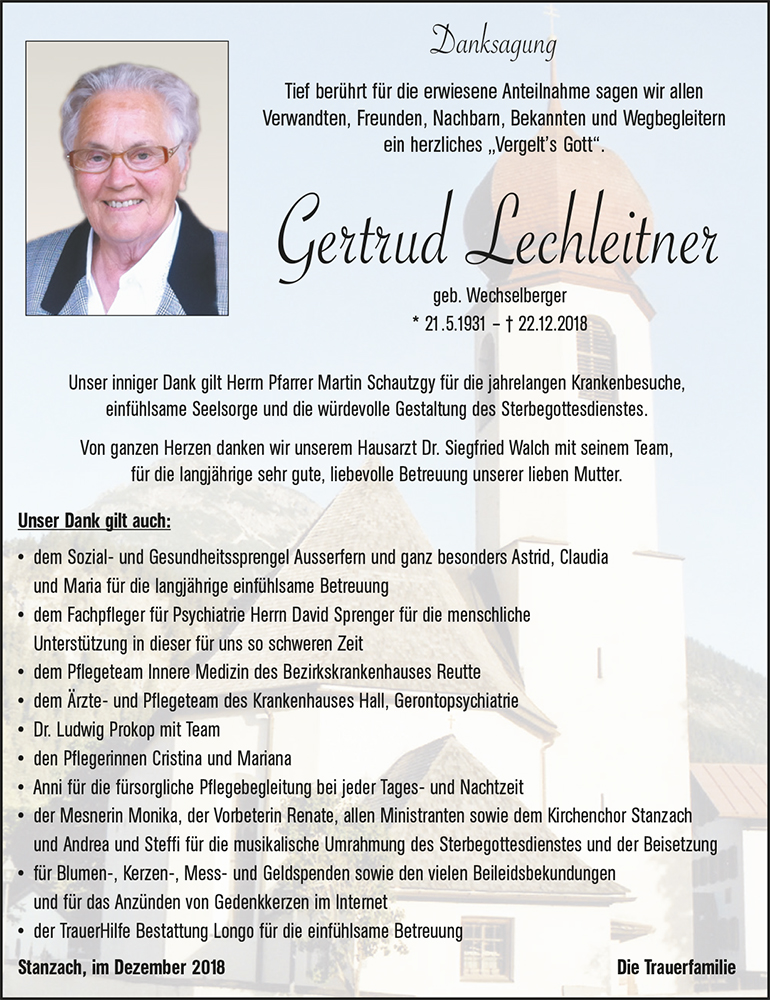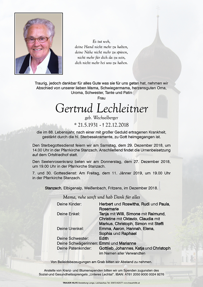 Liebe Traudl, der Herrgott soll es dir vergelten, die vielen Stunden, wo du mit meiner Mama zusammen gebetet, geredet, gelacht, geweint, einander getröstet habt.