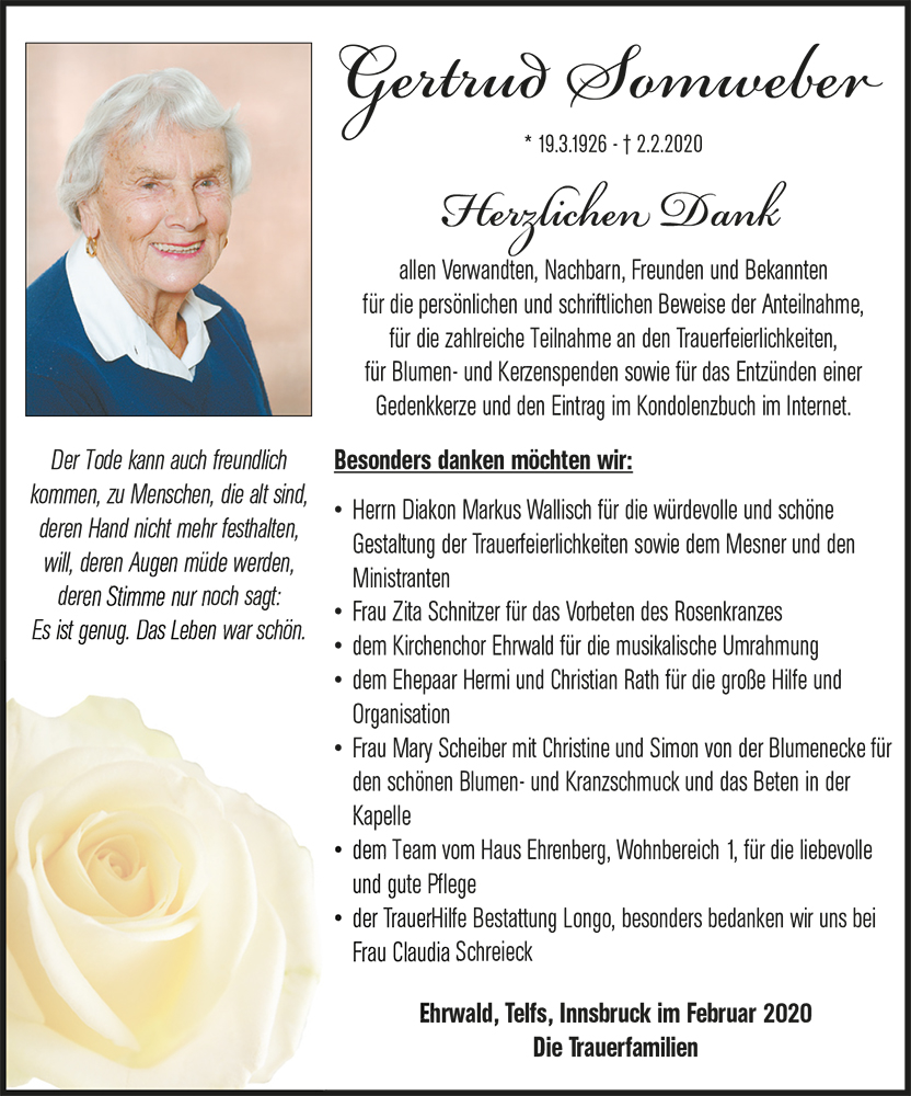 Kondolenzbuch für Gertrud Somweber