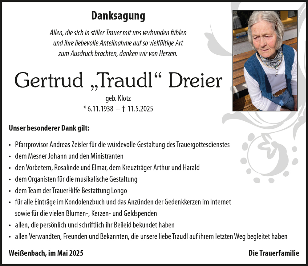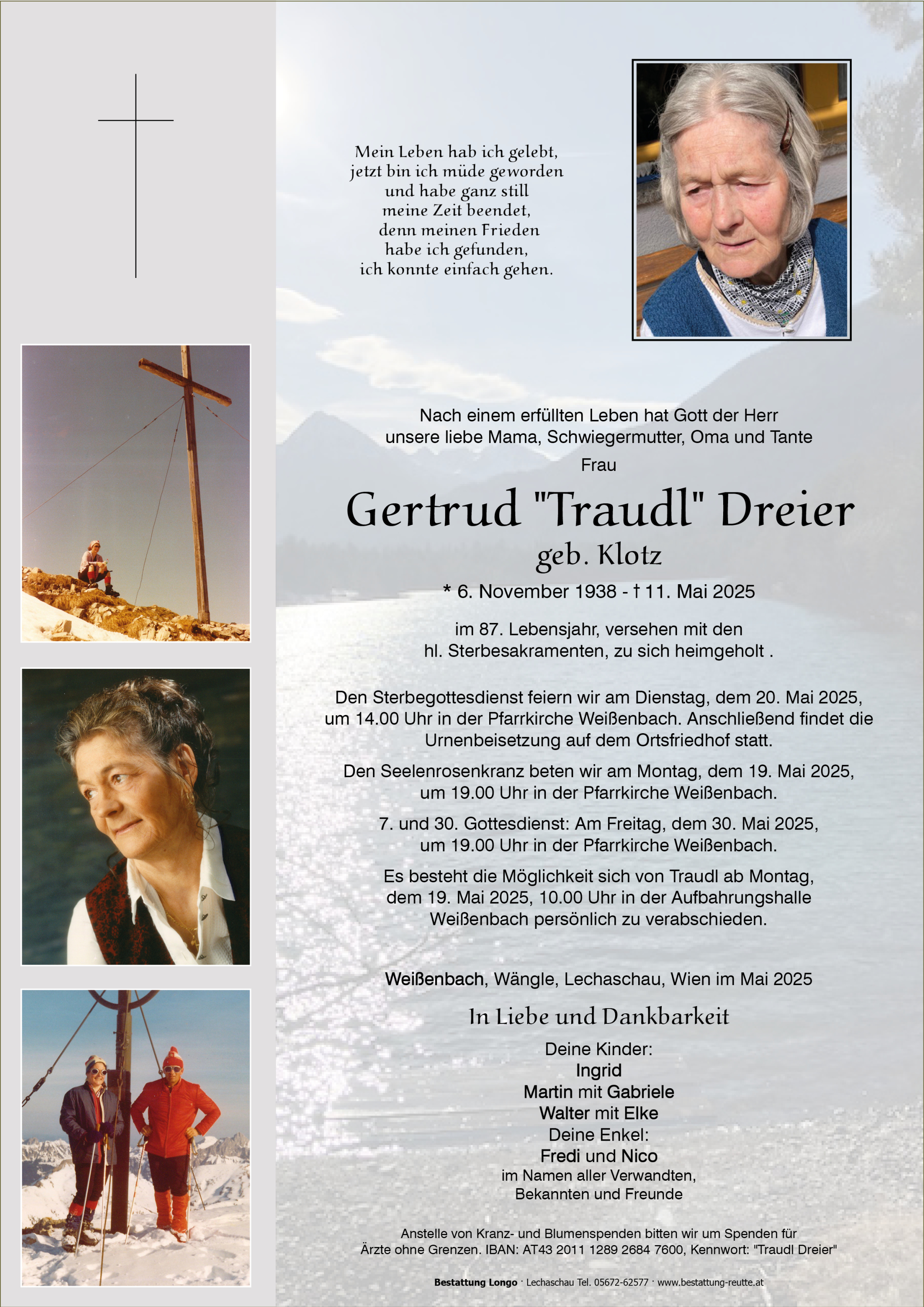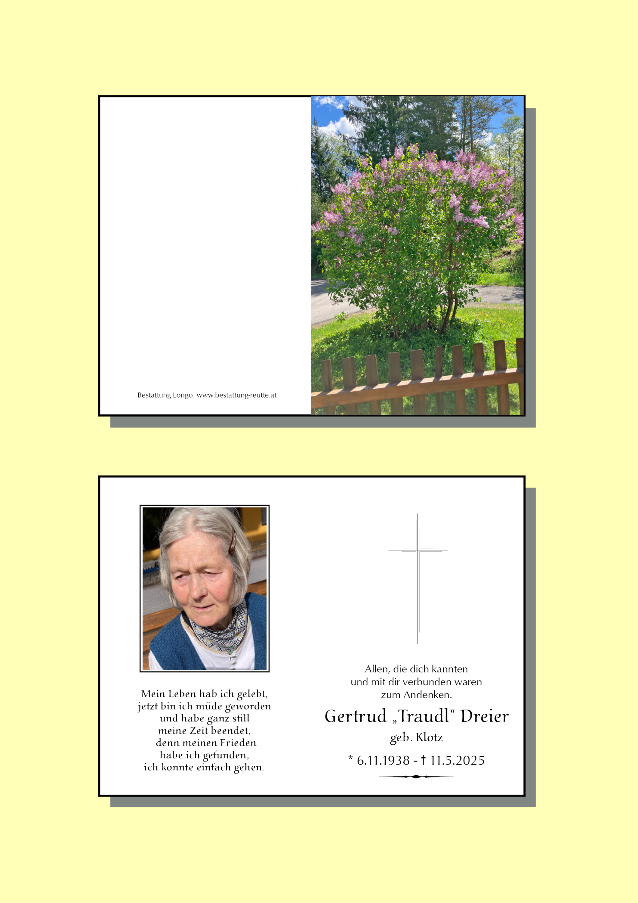 Kondolenzbuch für Gertrud "Traudl" Dreier