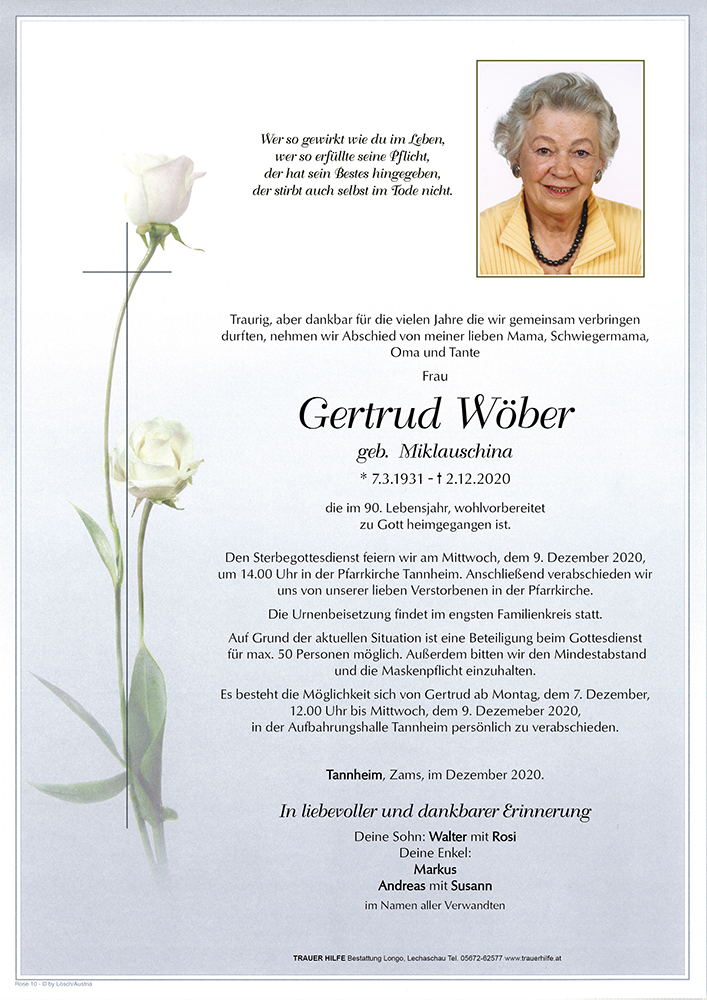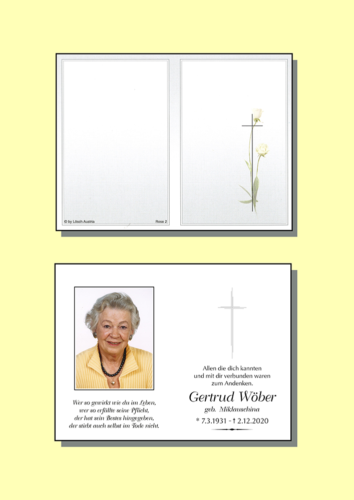 Lieber Walter und Deine FAM. Unser Aufrichtiges Beileid ich habe Deine Mutter immer gerne gehabt, sie war immer freundlich und hübsch. Ingrid Thaler (Huter). Mit FAM. WILDSCHÖNAU.