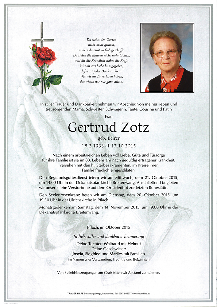 Auch auf diesem Weg, möchten wir Euch allen, unser aufrichtiges Beileid wünschen. Tante Gerti und Onkel Walter waren wichtige Personen für mich und es schmerzt mich, sie nicht mehr sehen und sprechen zu können.