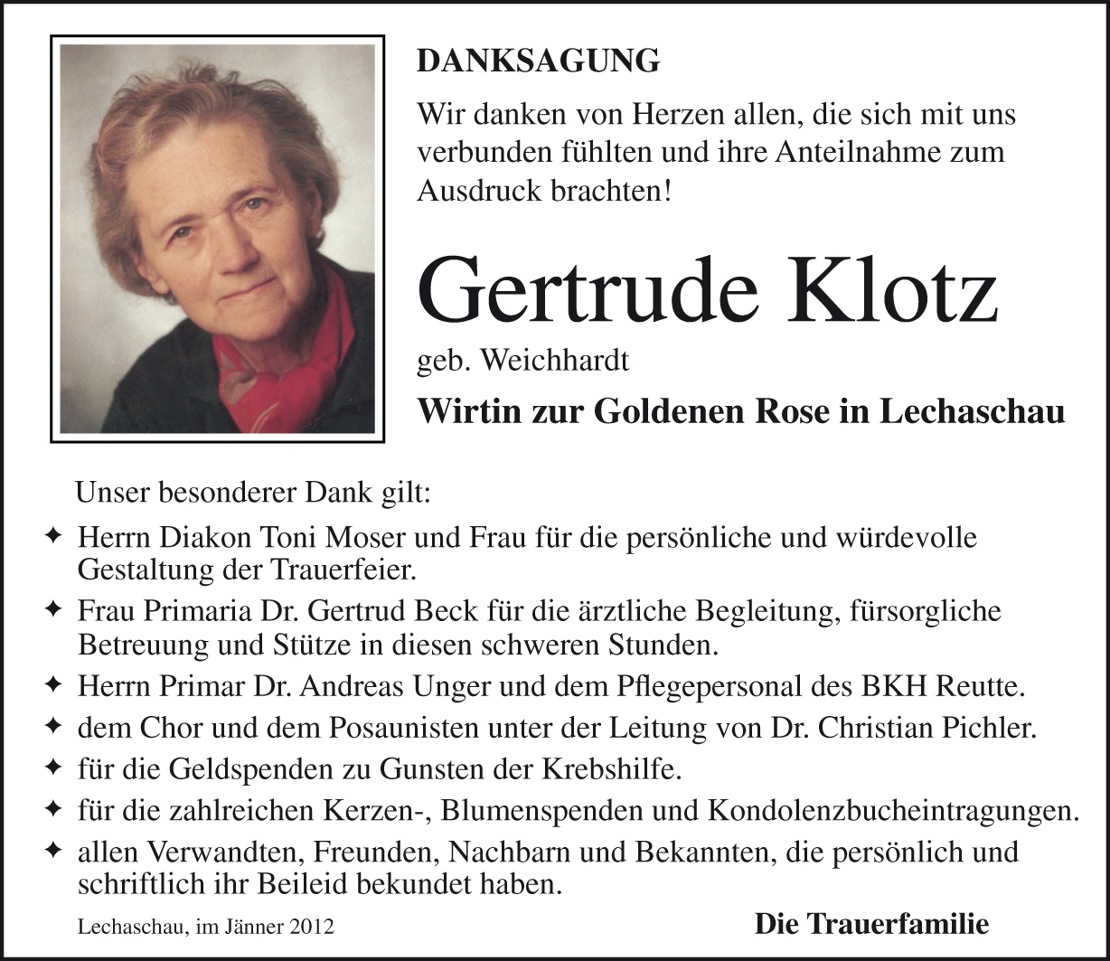 Die regelmäßigen "Klotzbesuche" für uns damalige Neu-Lechaschauer führten zu einer netten Freundschaft mit Gerti.