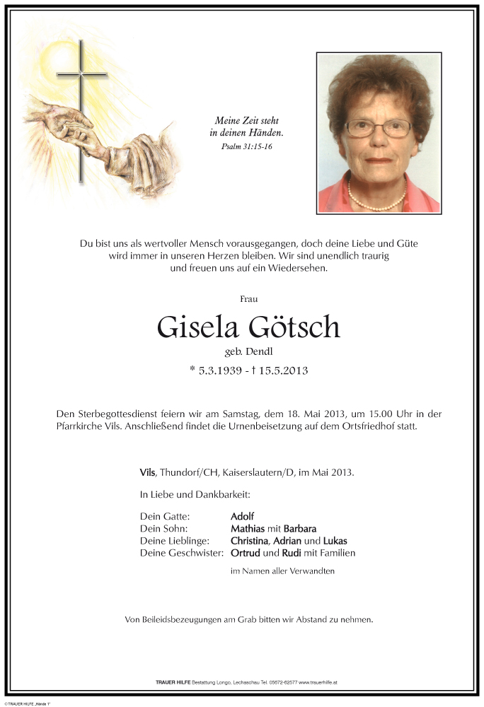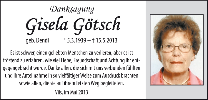 Wir werden Frau Götsch in liebevoller Erinnerung behalten.
