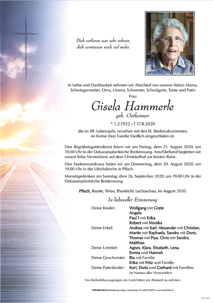 Kondolenzbuch für Gisela Hammerle