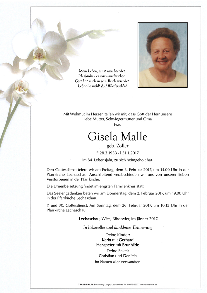 Kondolenzbuch für Gisela Malle