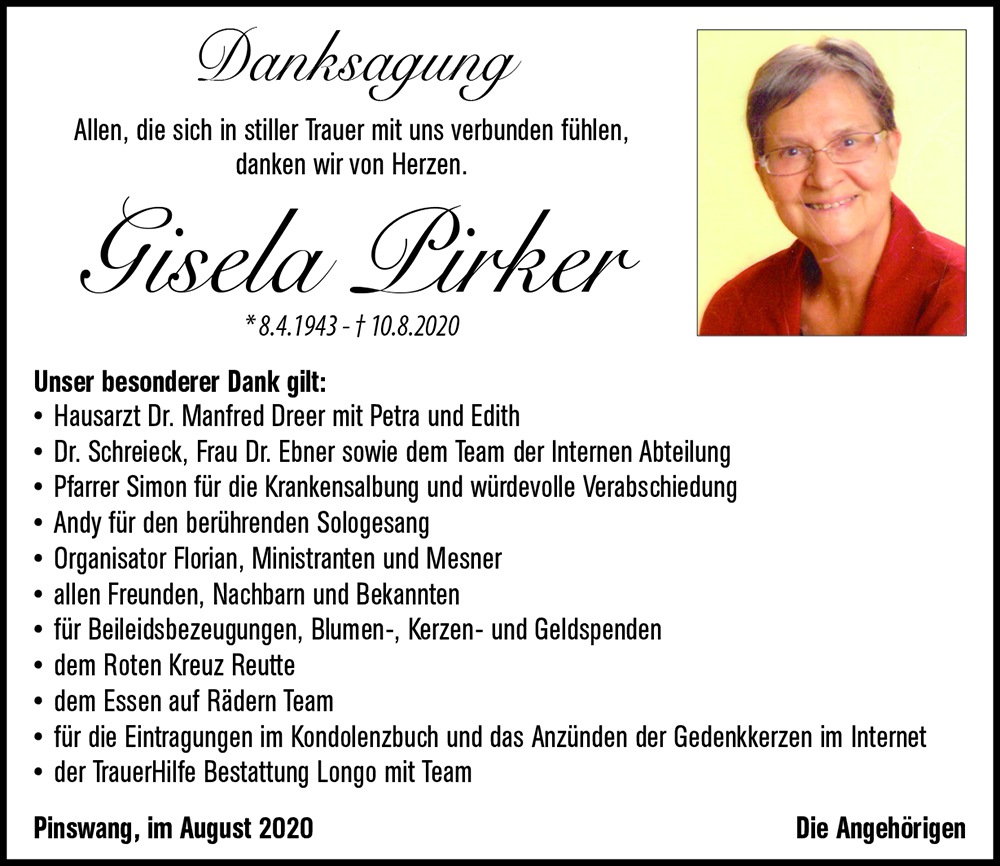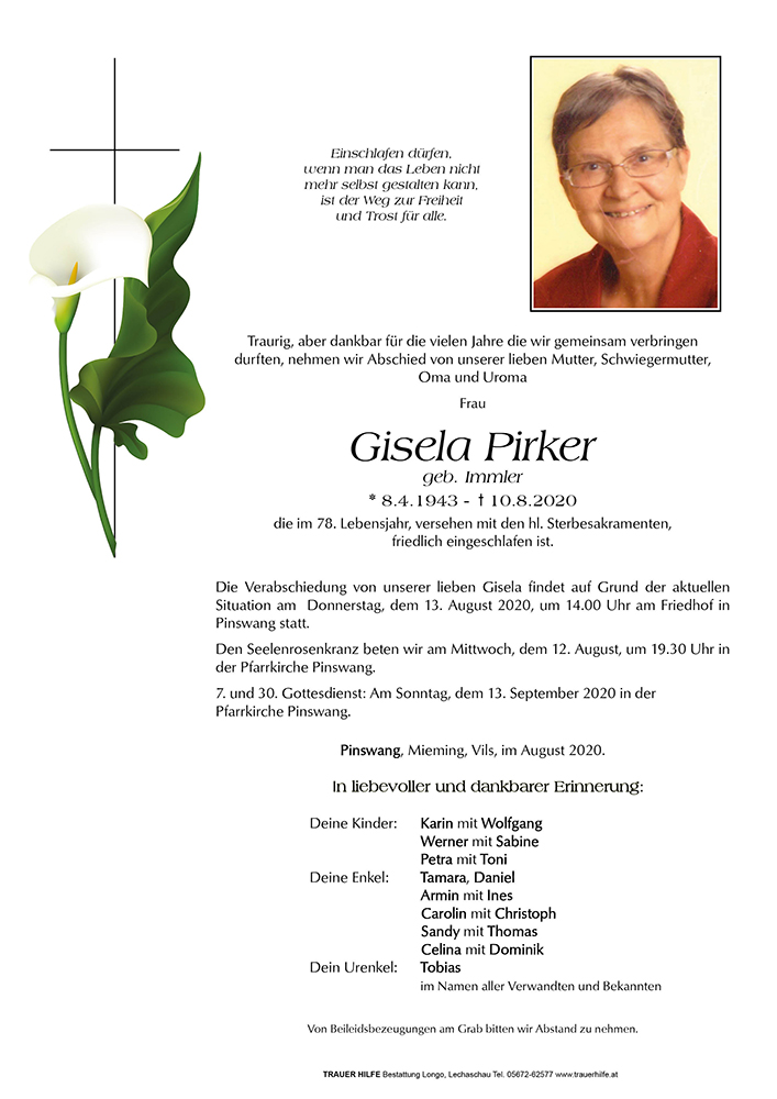Kondolenzbuch für Gisela Pirker