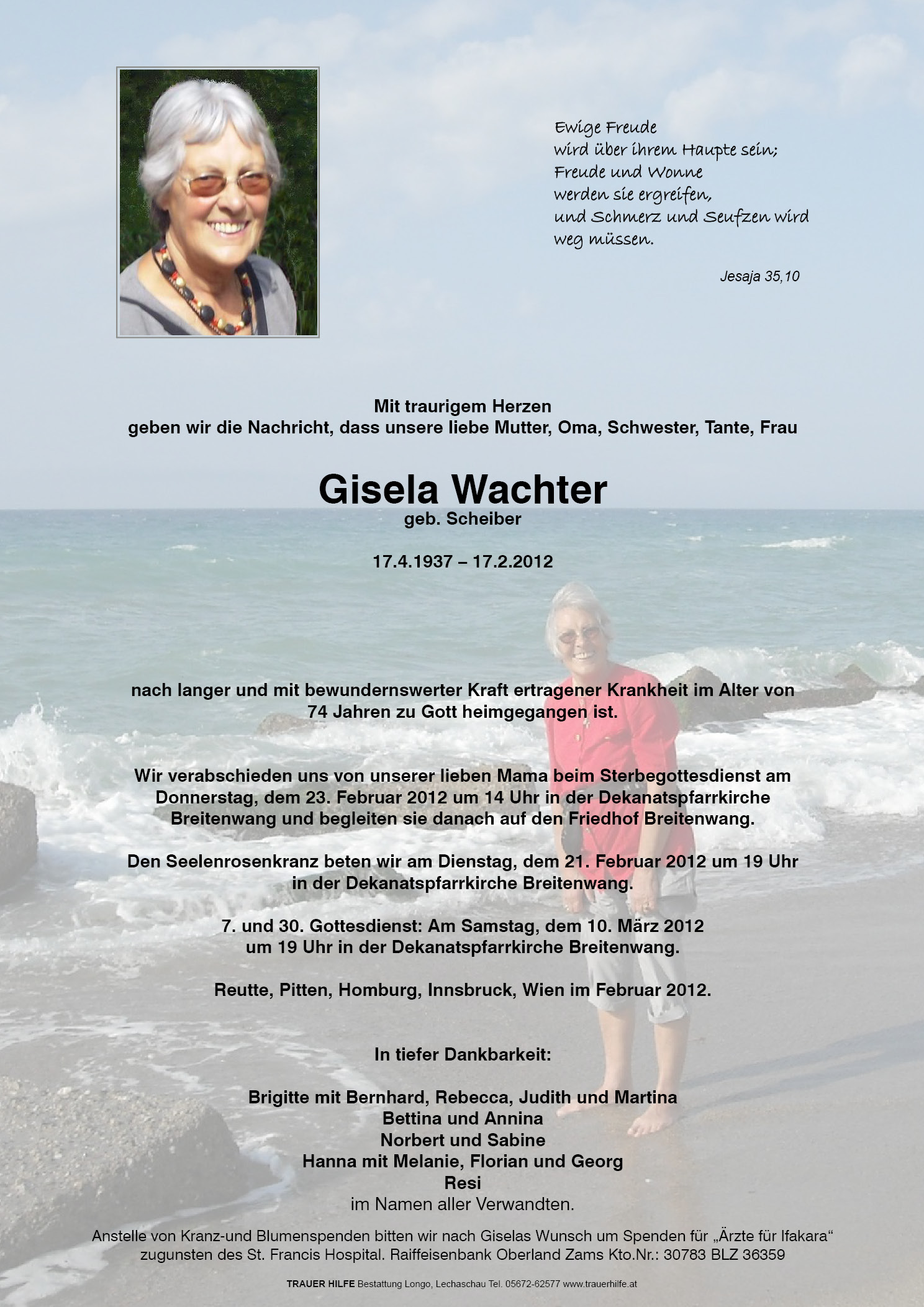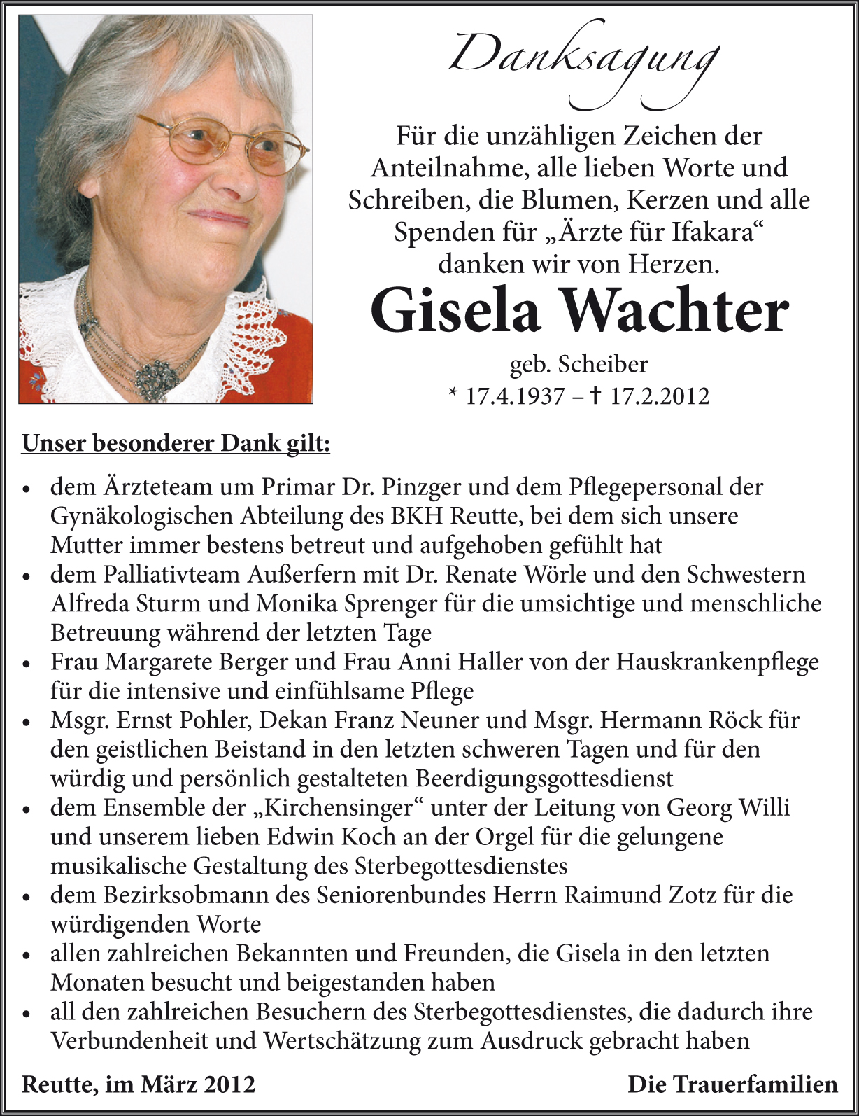 Kondolenzbuch für Gisela Wachter