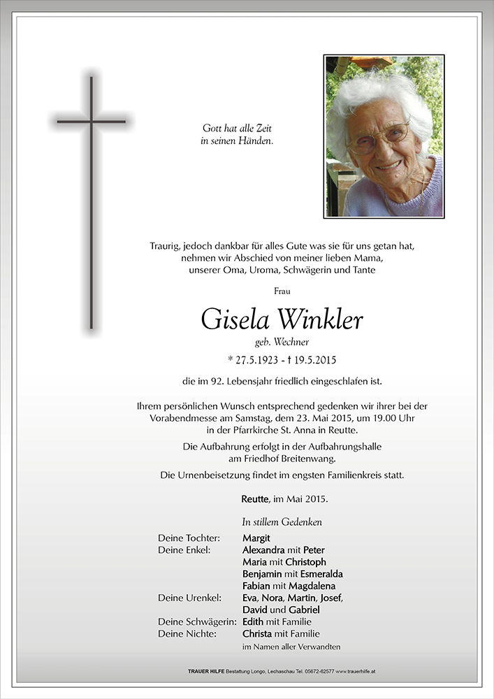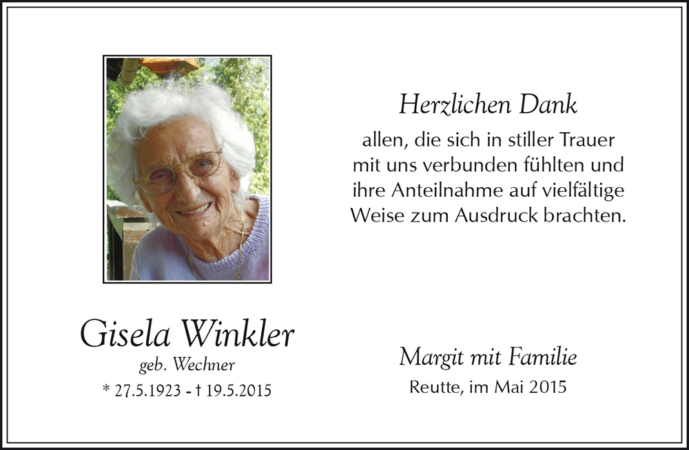 Kondolenzbuch für Gisela Winkler