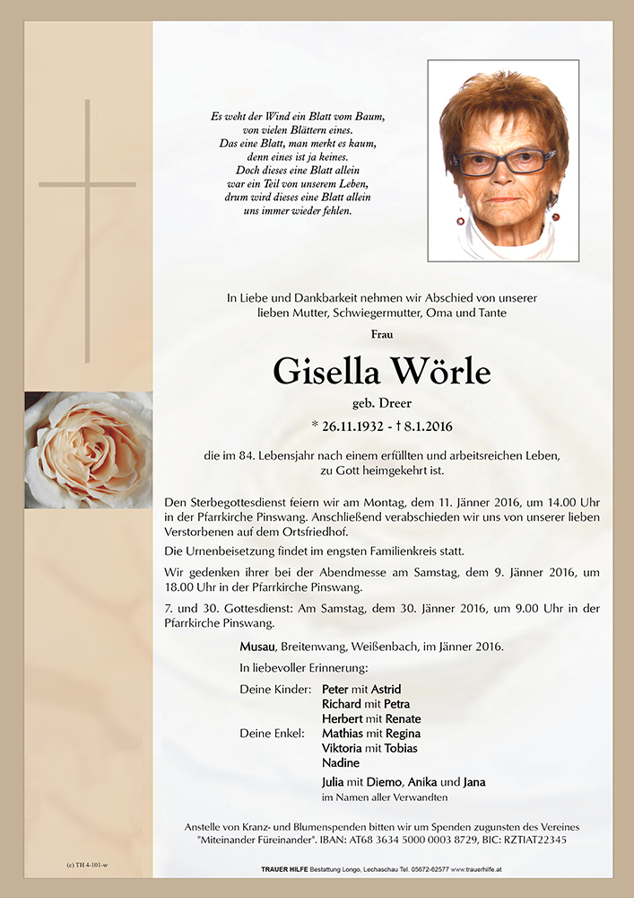 Wir werden Gisella sehr vermissen, wenn sie bei uns vorbei gegangen ist und immer einen netten Gruß und ein paar Worte geredet hat.